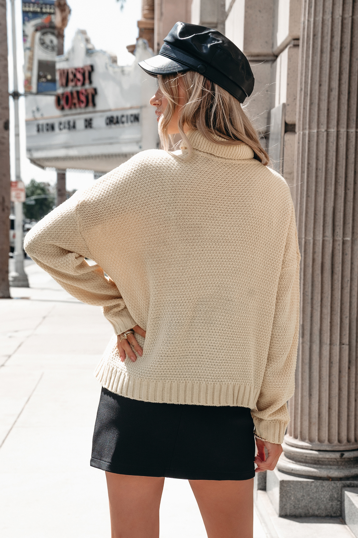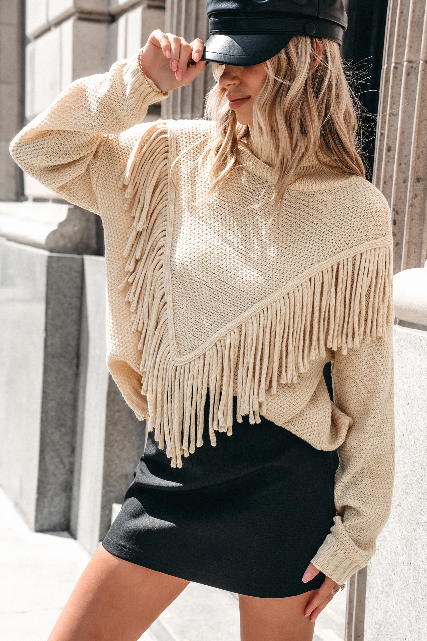 Pull à col roulé et manches longues avec franges abricot