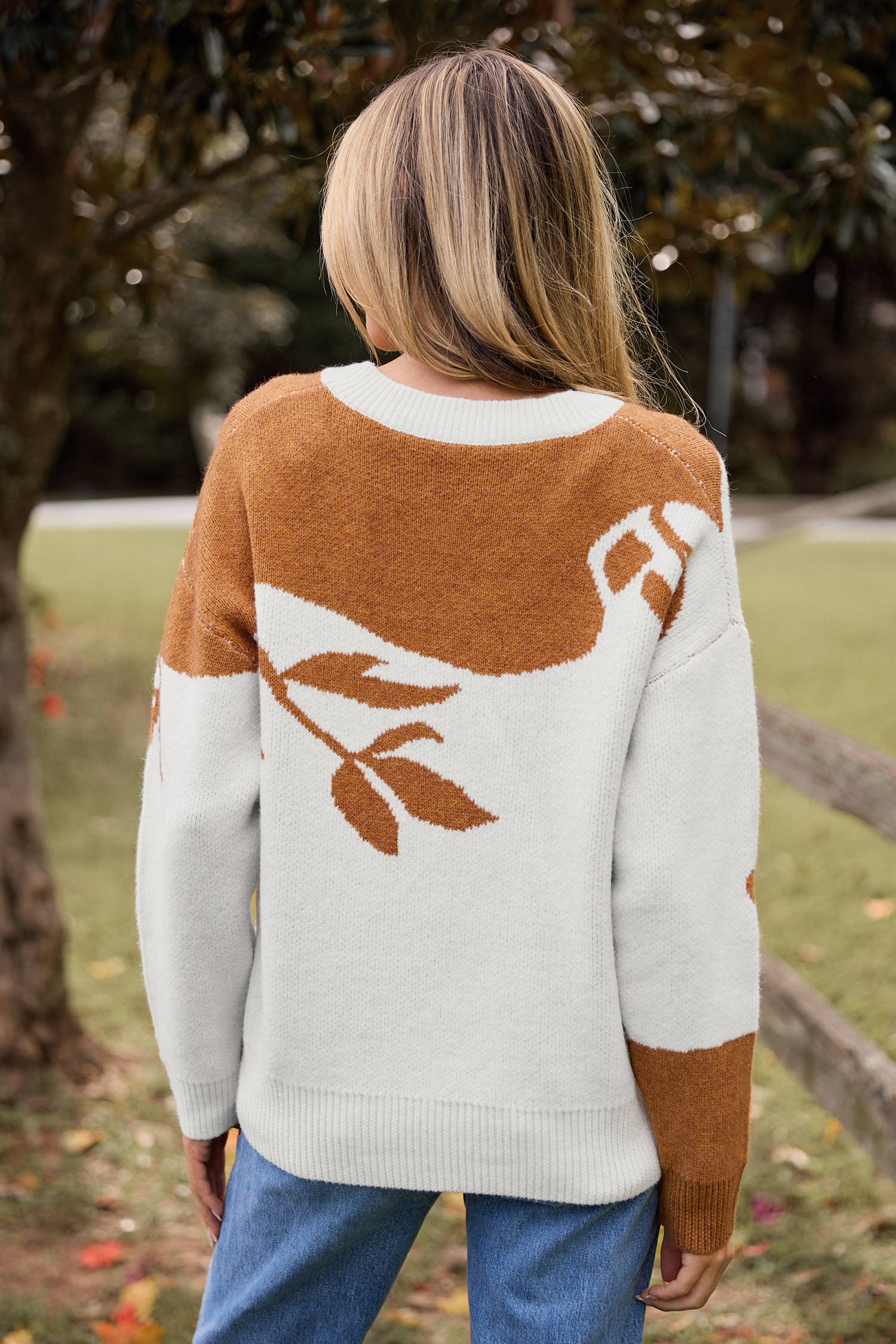 Pull à manches longues et épaules tombantes feuilles d'automne