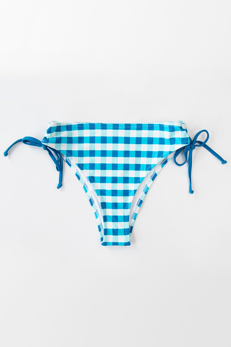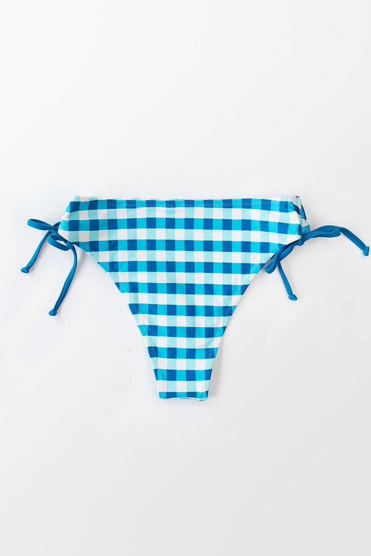 Bas de bikini à carreaux bleu et blanc à cordon sur le côté