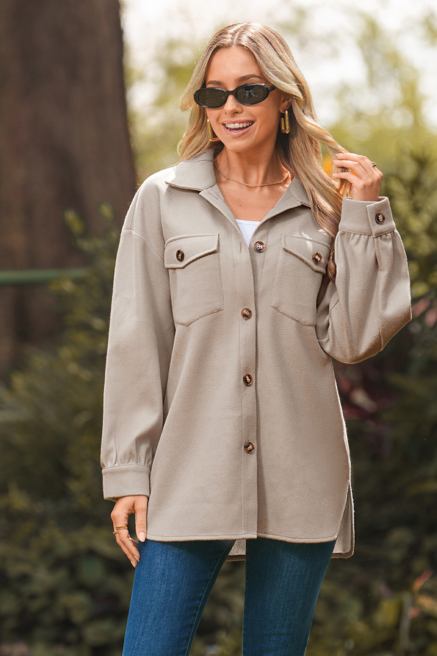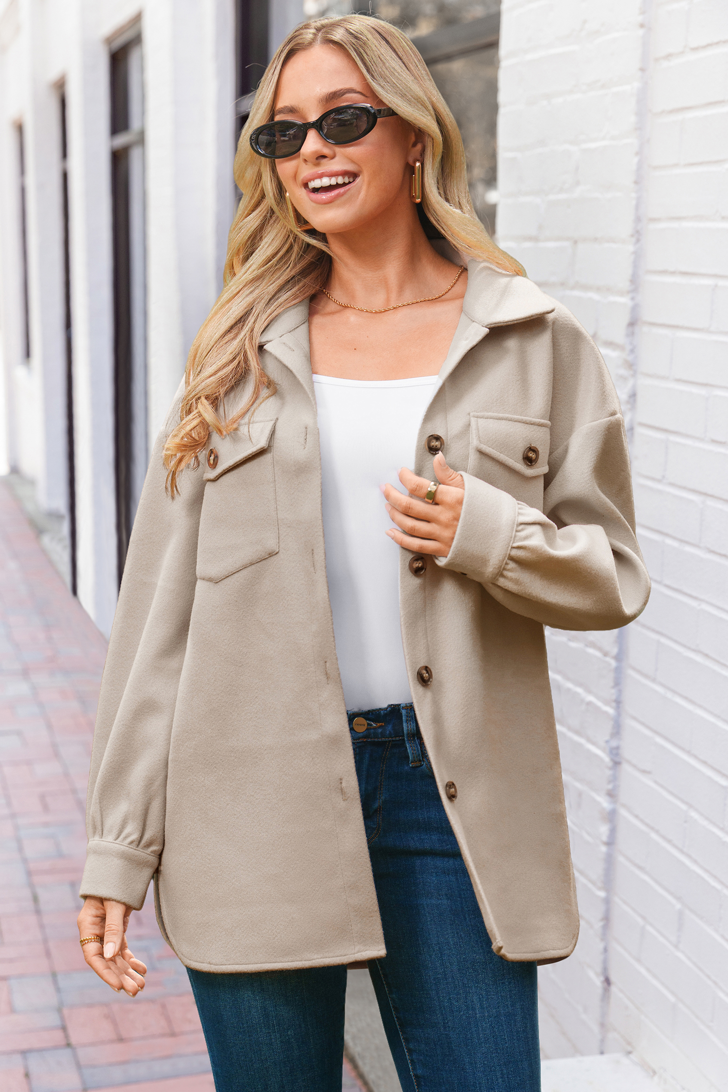 Manteau à boutons et carreaux beige