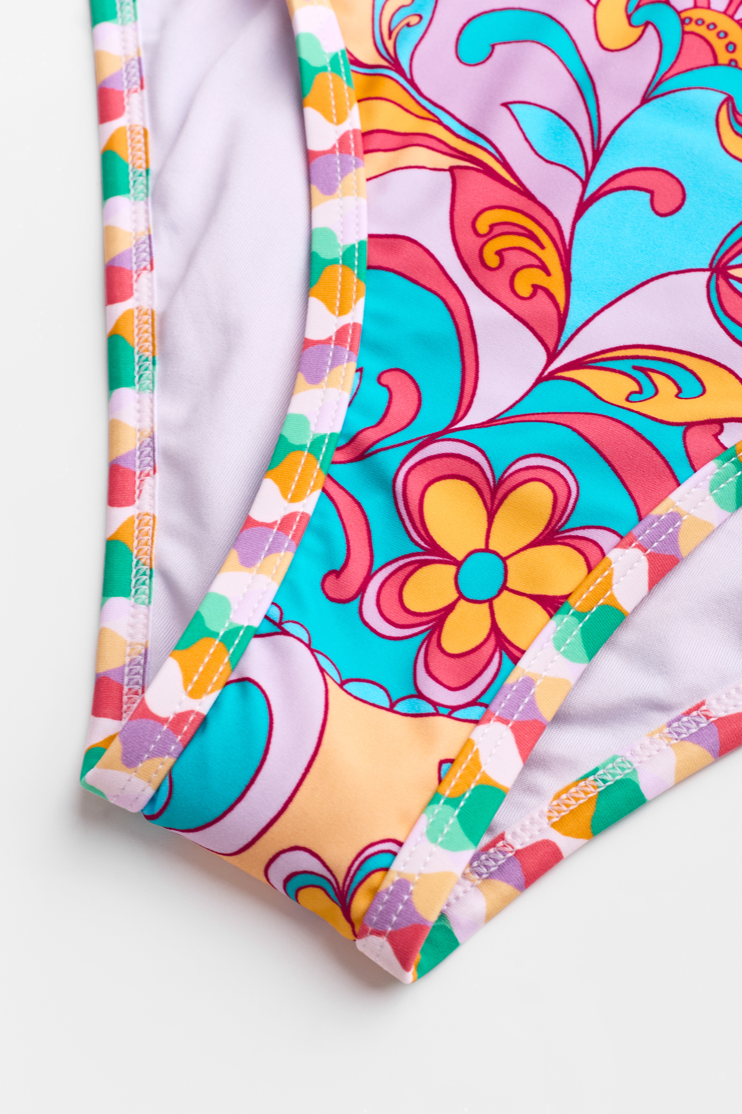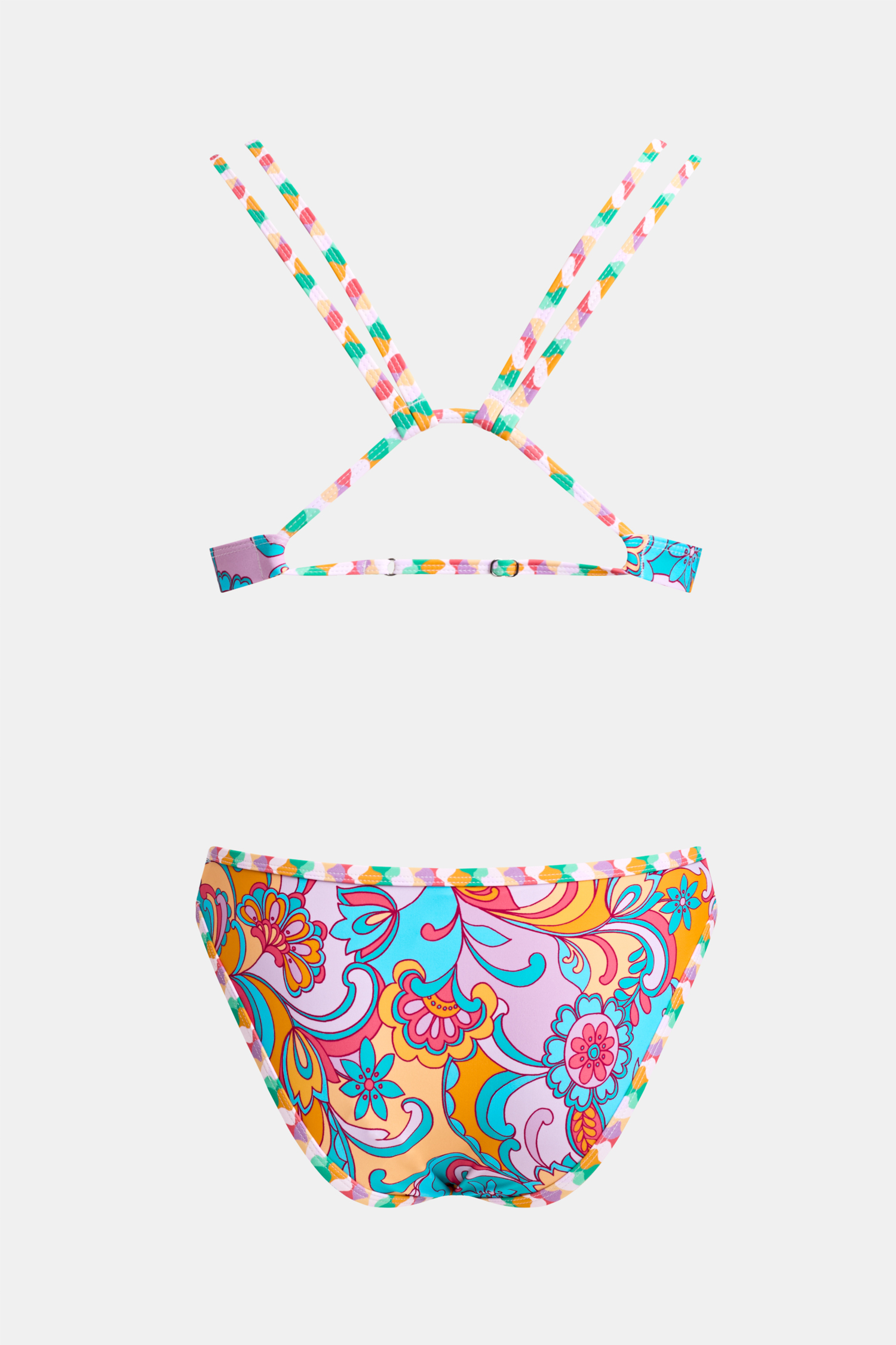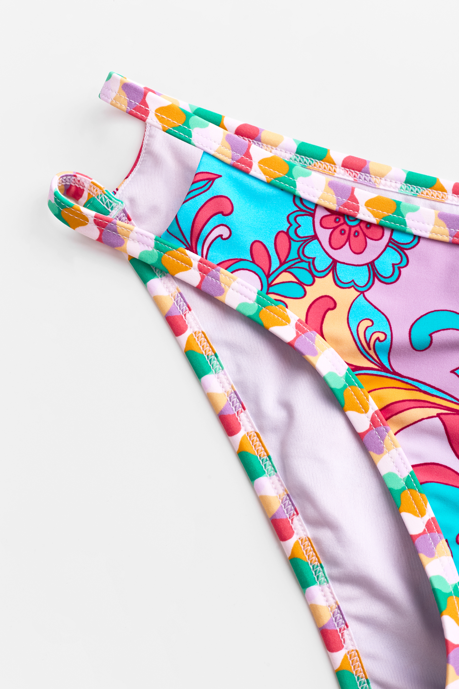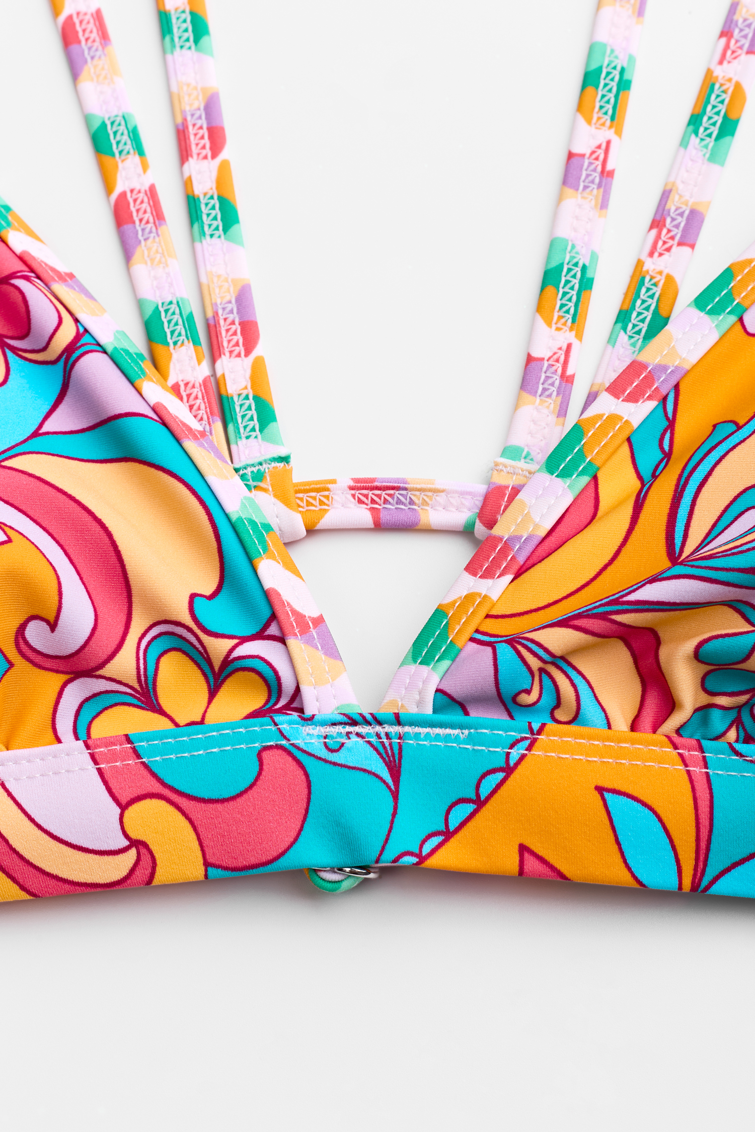 Canalisez la déesse bohème qui sommeille en vous avec botre bikini avec col en V à bretelles et rayures découpé boho. Cet ensemble tendance associe des rayures ondulées à des détails à bretelles et à des découpes ludiques, ce qui en fait le choix parfait pour une journée de plage chic et tendance.