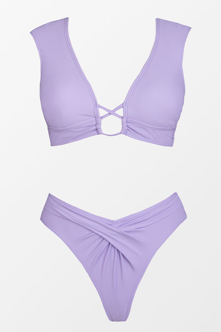 Bikini bralette à mancherons et à torsadé sur le devant taille haute