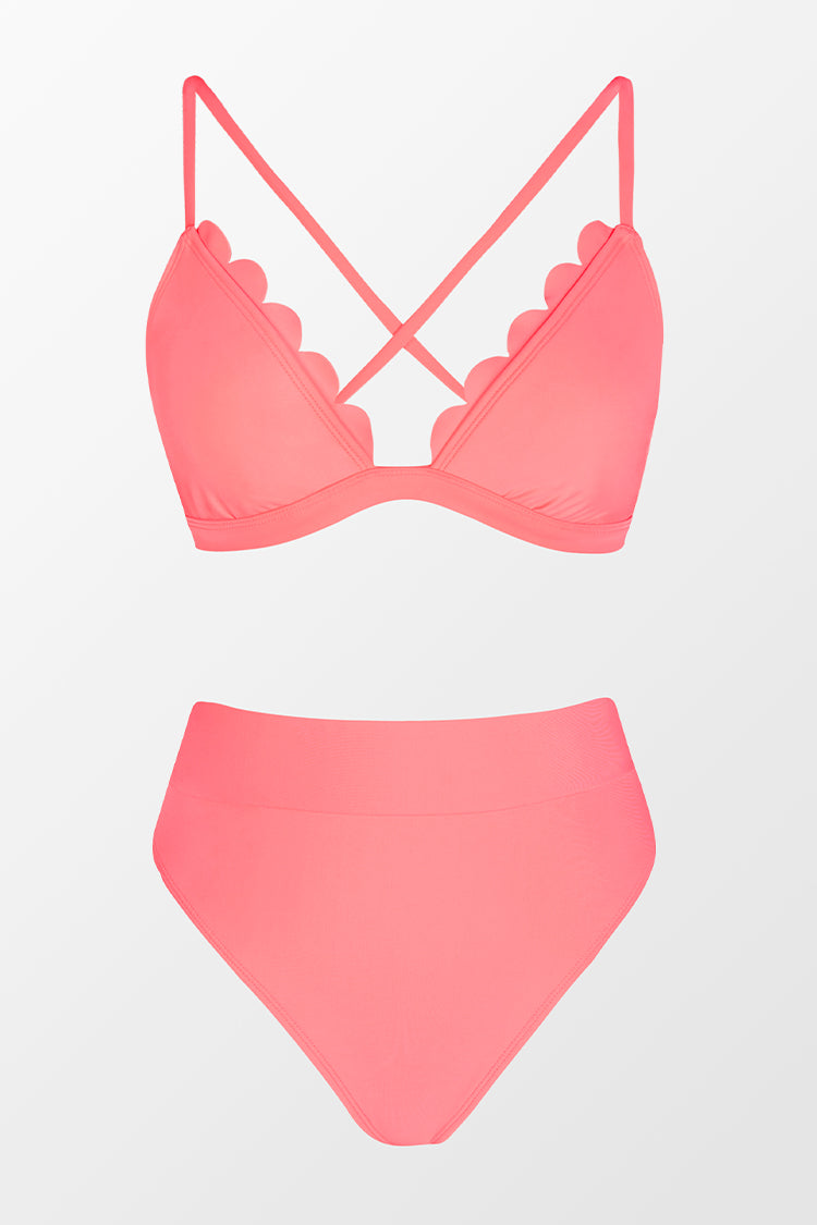 HomeBikini bralette festonné et à bandes taille haute