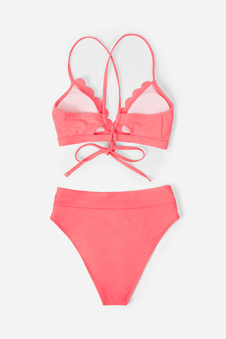 Bikini bralette festonné et à bandes taille haute