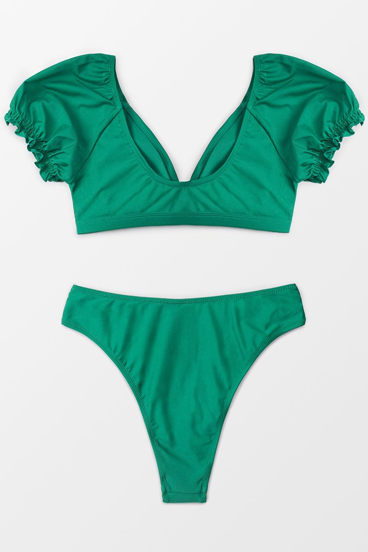 Bikini col en V à manches bouffantes