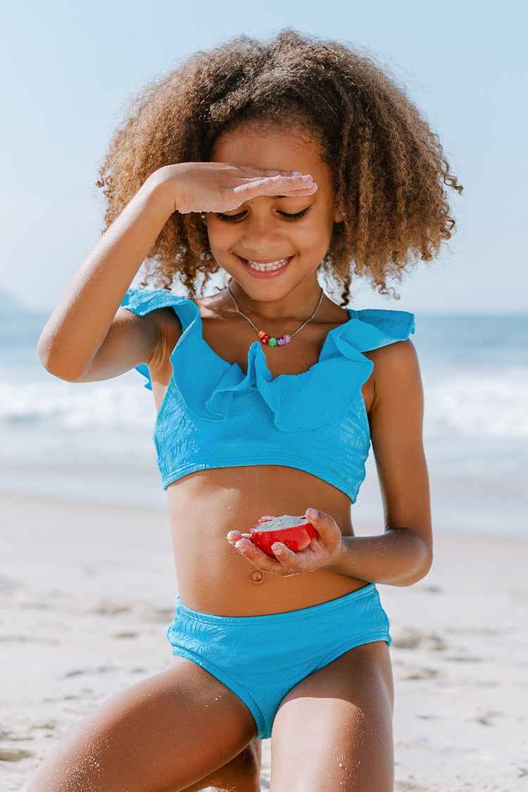 Bikini fille à volants et à col scoop