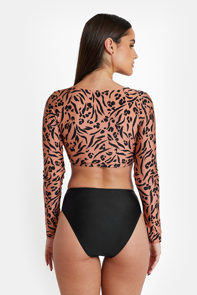 Bikini haut à manches longues et taille haute devant en V