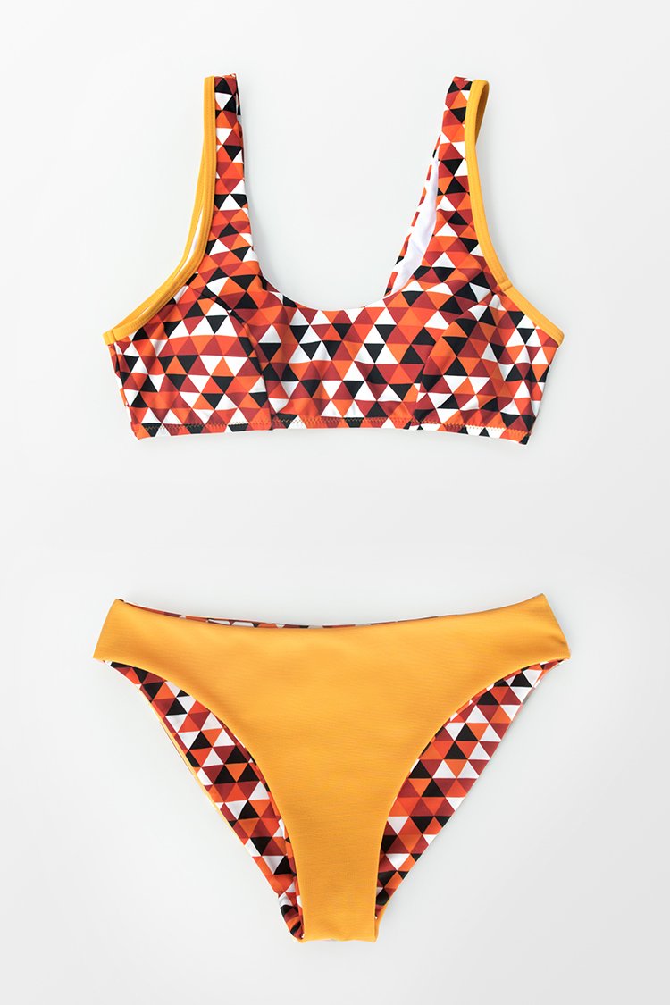 Bikini Imprimé Triangle Géométrique Rouge Blanc Et Noir