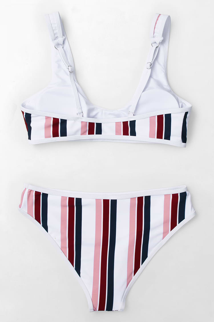 Bikini Rayé à Col Échancré