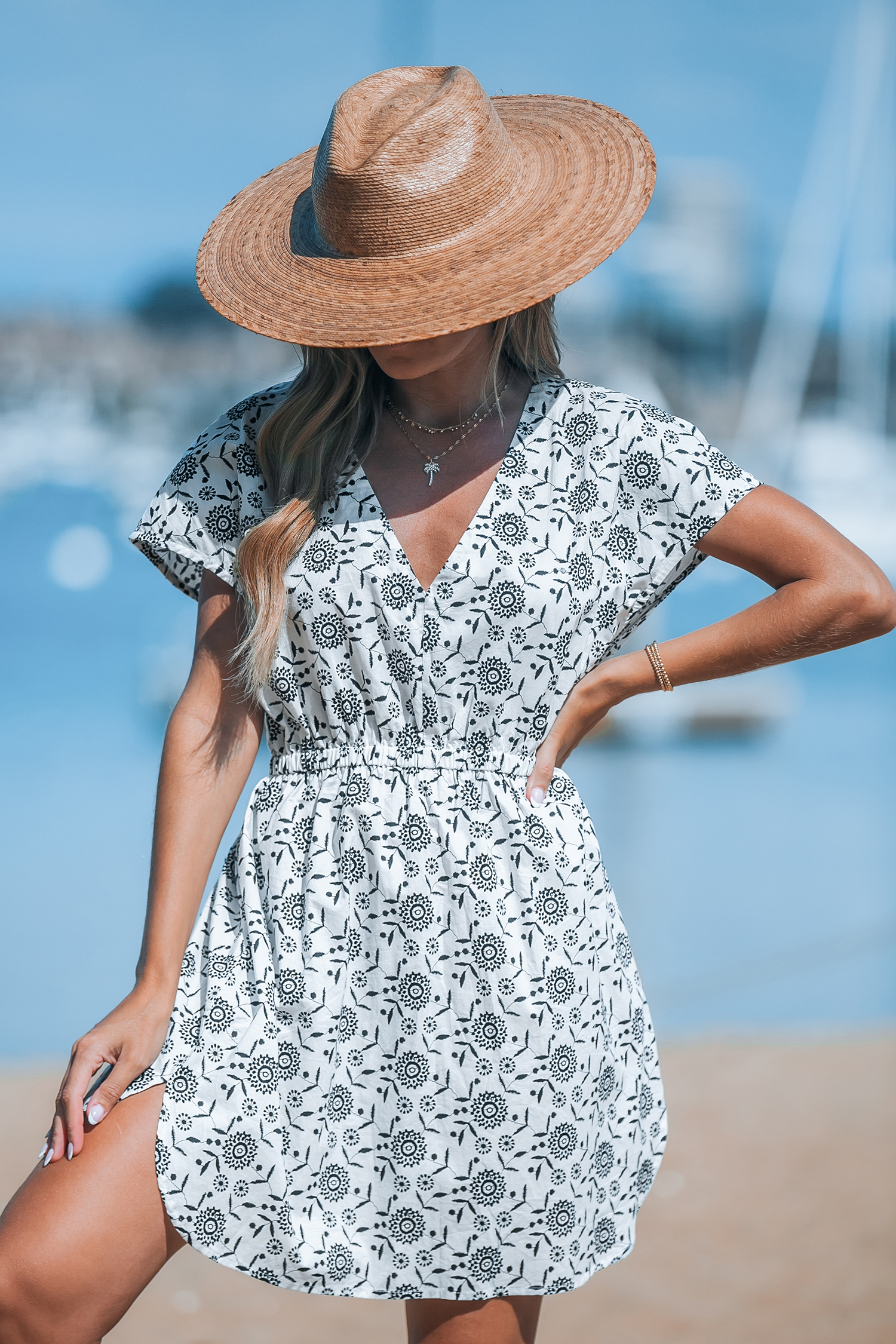 Robe cover up en pur coton mini à manches courtes à fleurs