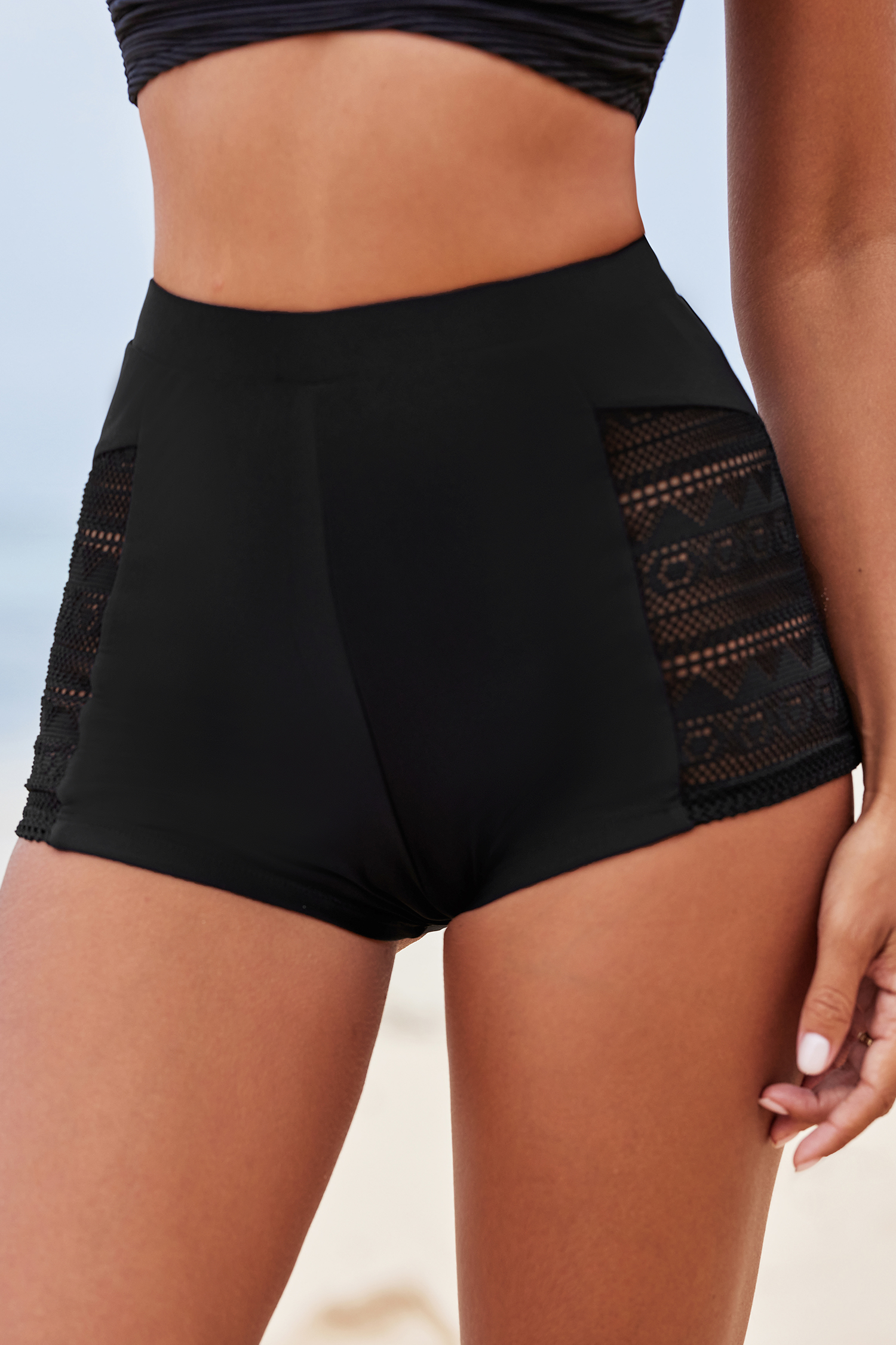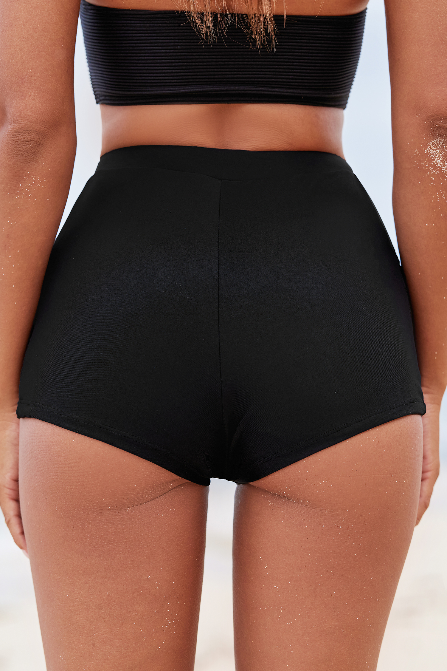 Short de bain taille haute découpé noir rétro