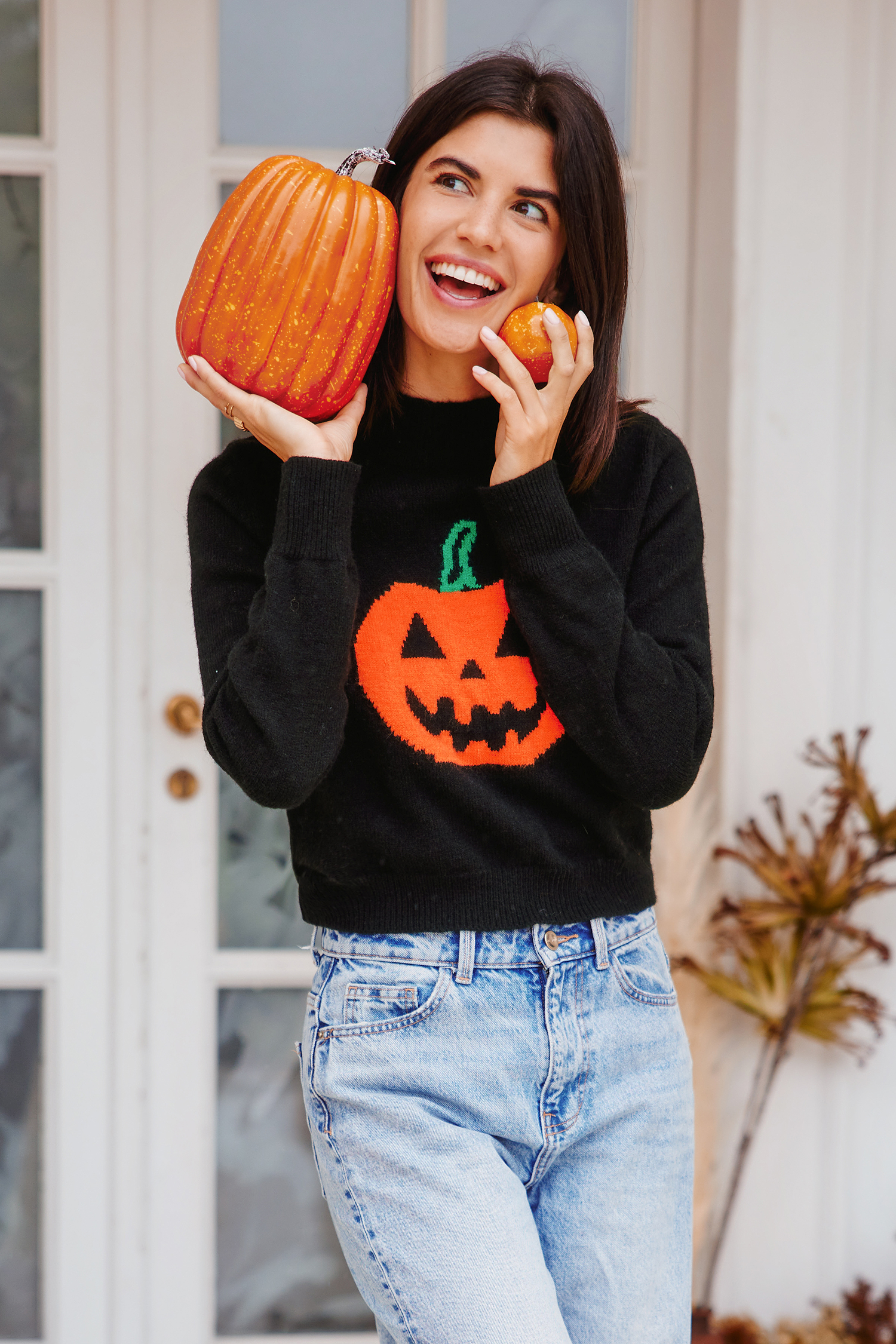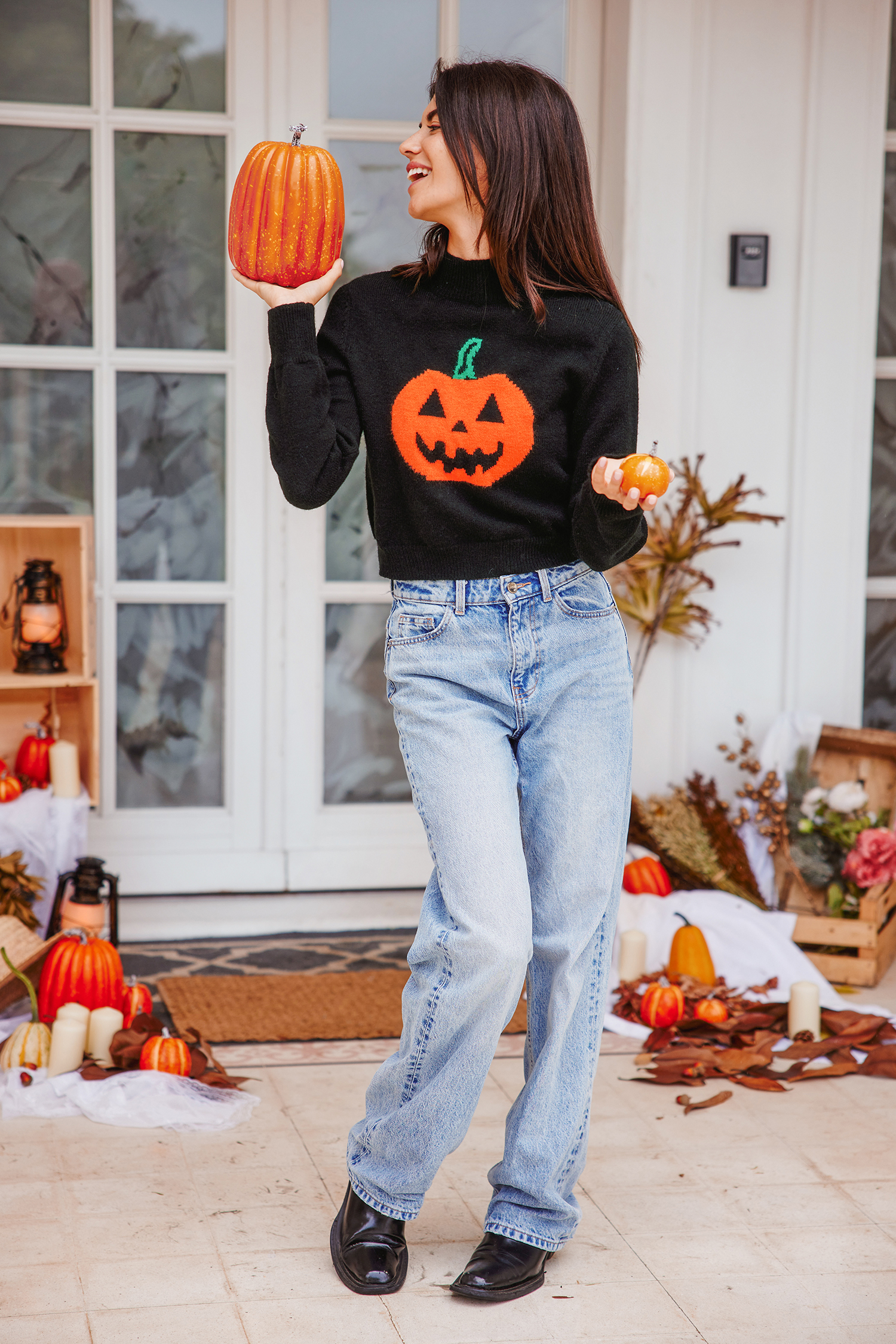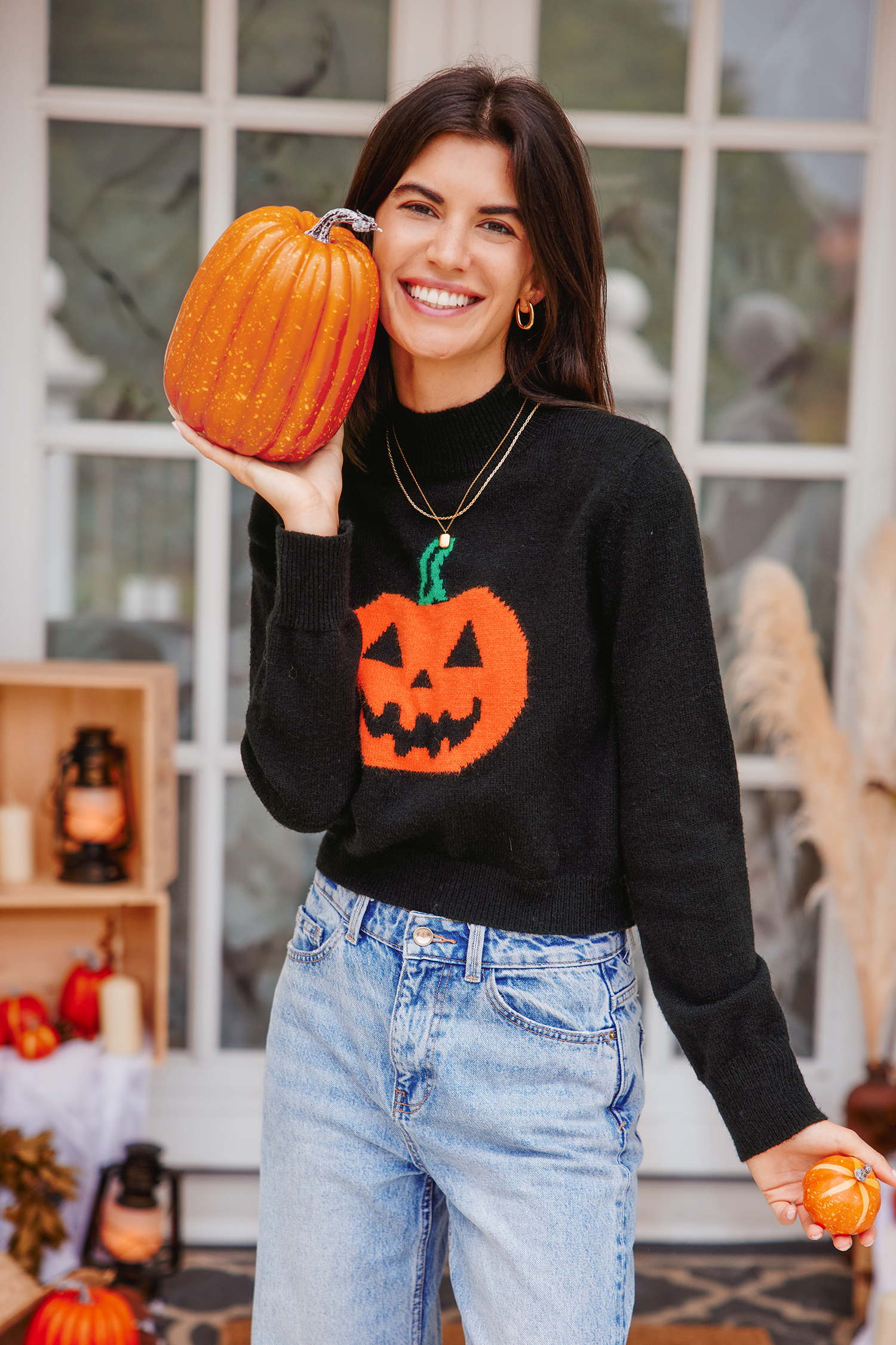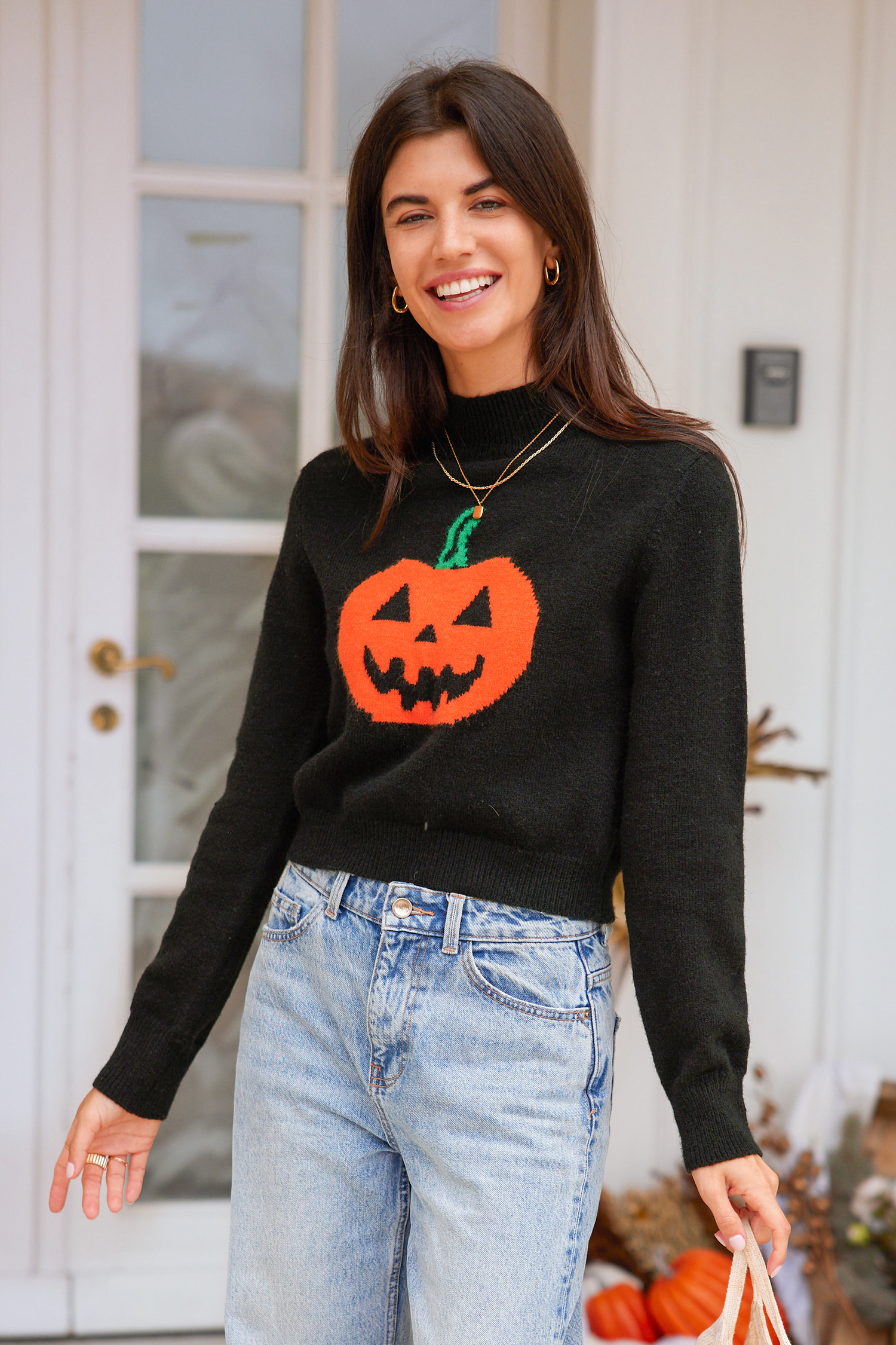 Pull à col montant et manches longues avec Jack-O-Lantern noir