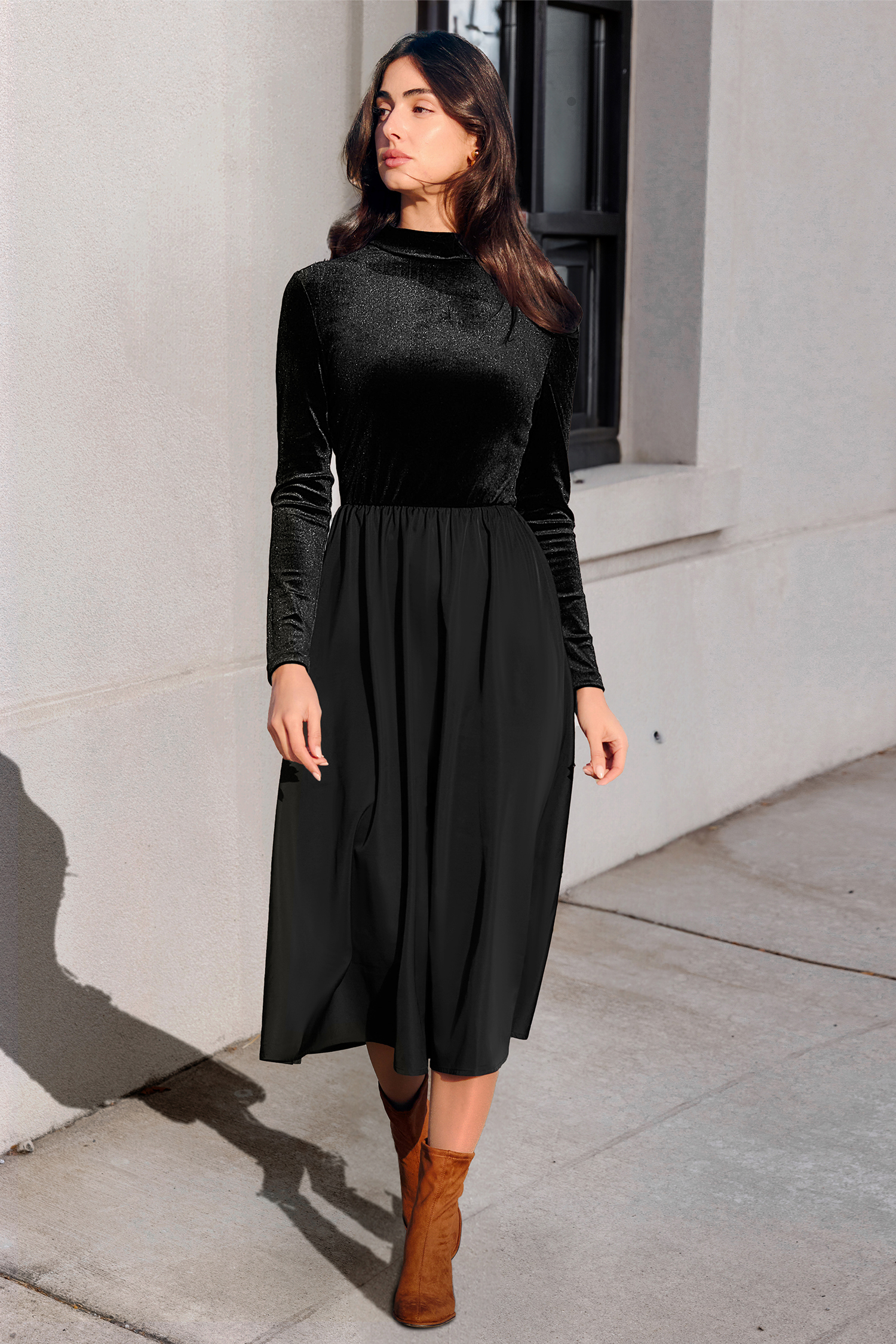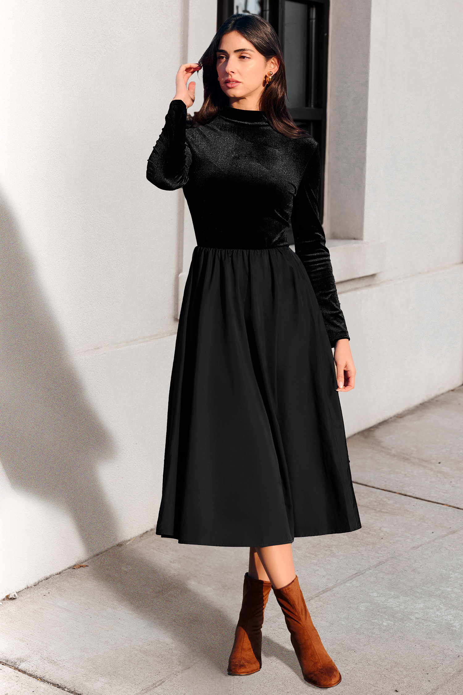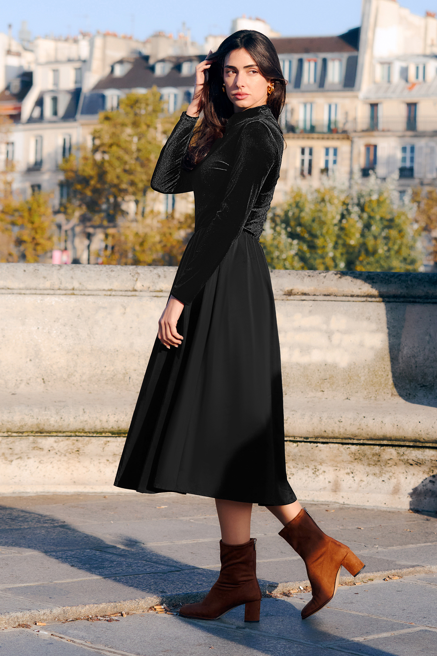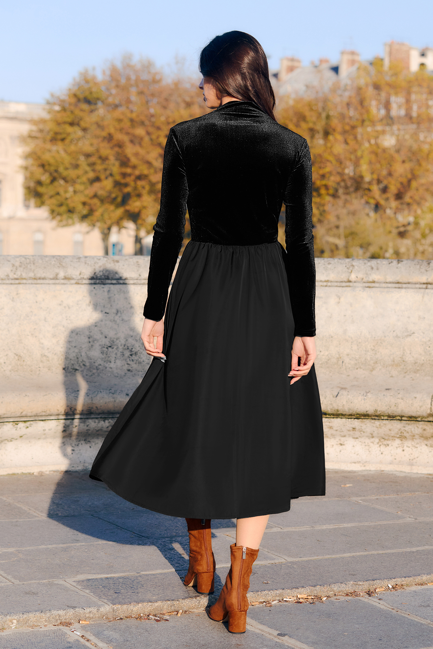 HomeRobe à haut noir manches longues avec jupe ruchée