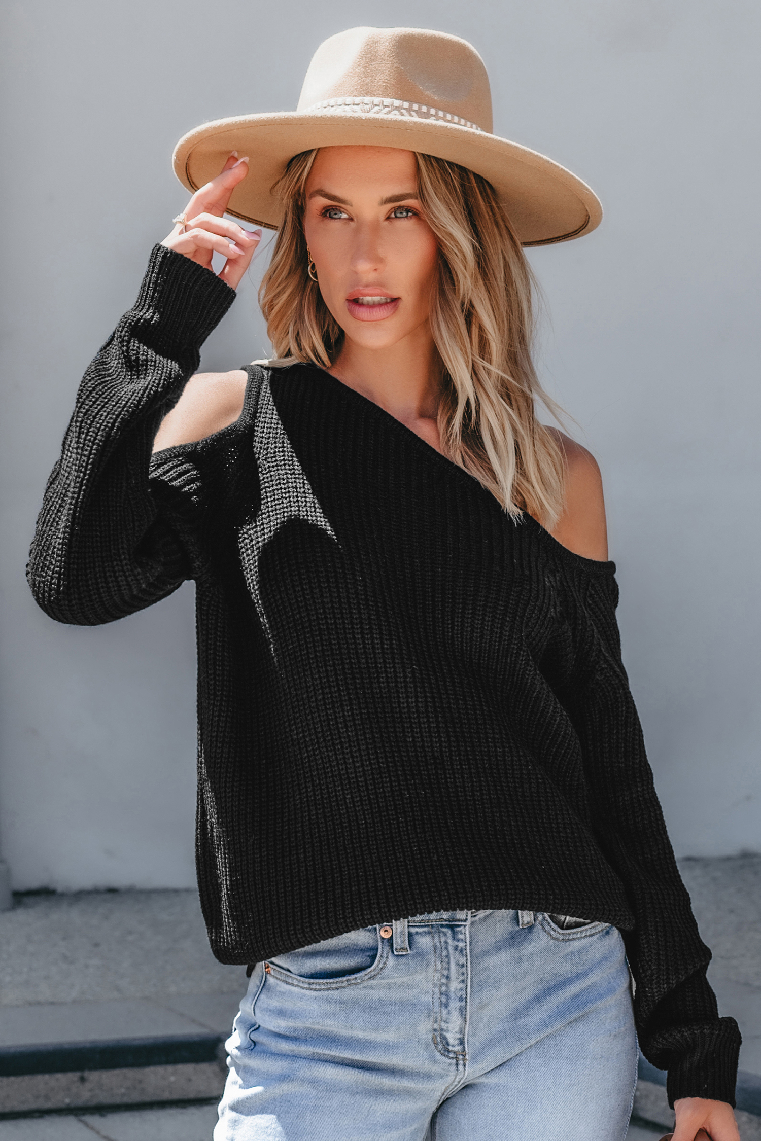 Prête à abandonner les basiques ? Notre pull à épaules dénudées et manches longues avec découpe noir vous couvre avec son encolure asymétrique et ses découpes audacieuses sur les épaules. Il est parfait lorsque vous voulez avoir l'air cool sans effort et sans en faire trop.