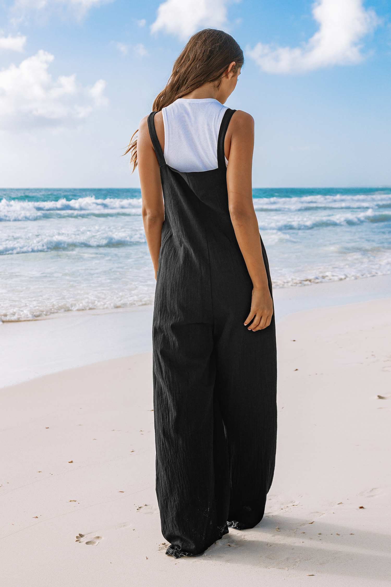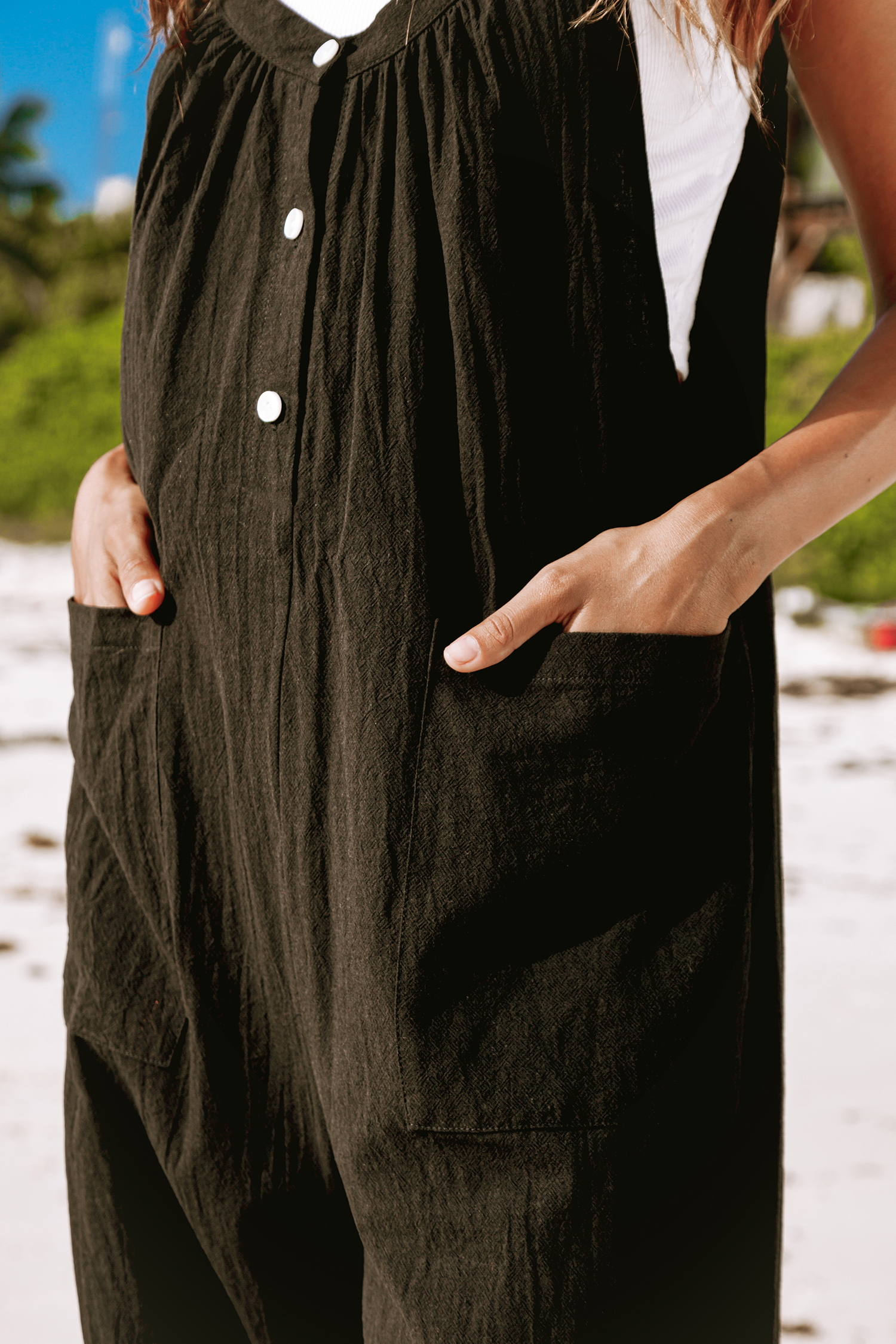 Combinaison en pur coton à jambes larges et poches plaquées noire