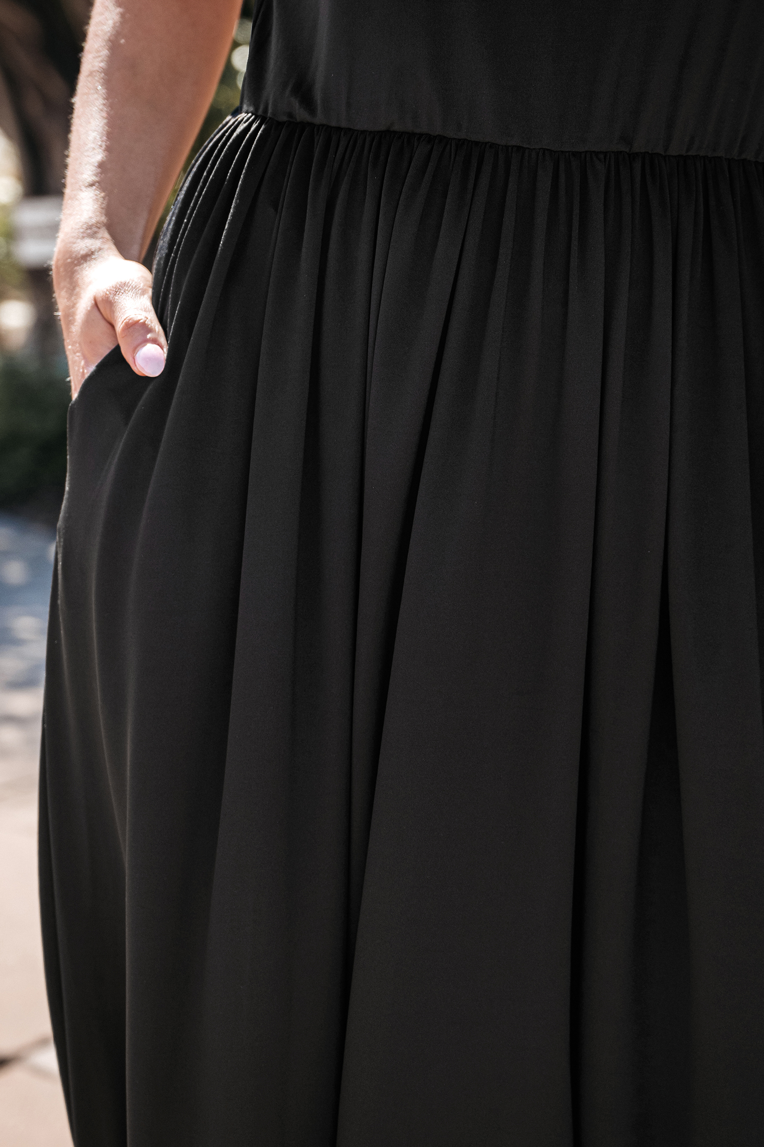 Combinaison sans manches à col scoop et jambes trapèze noire