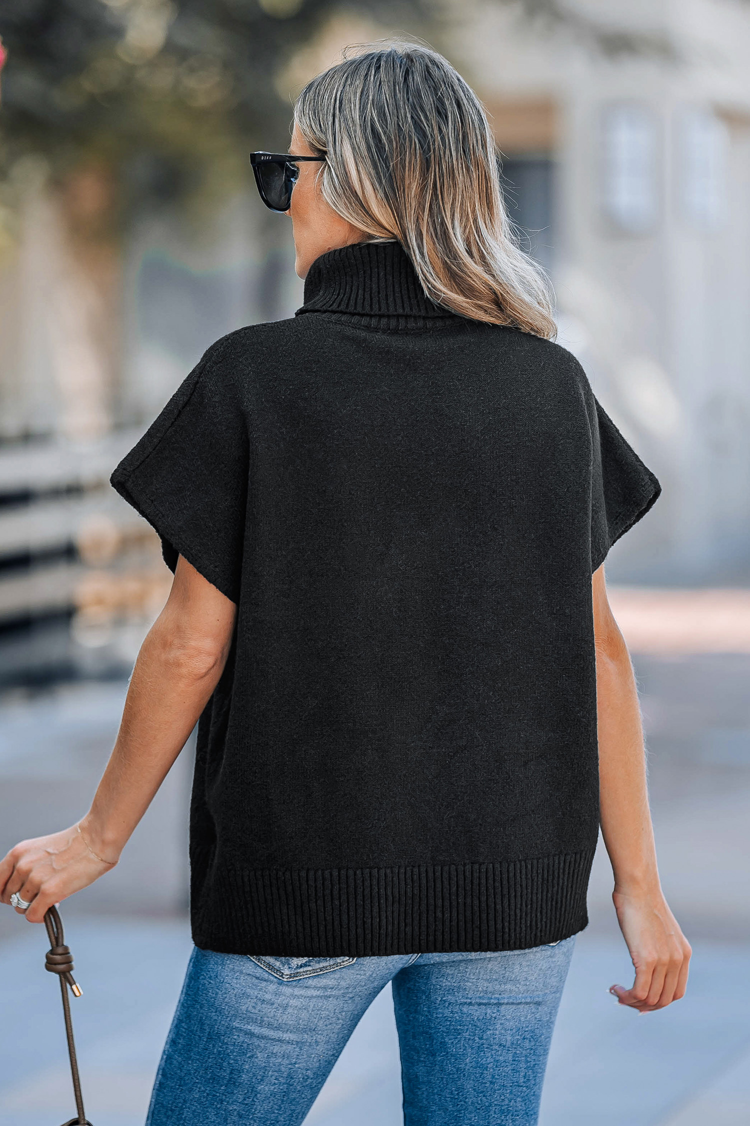 Haut en tricot à col roulé et manches courtes noir