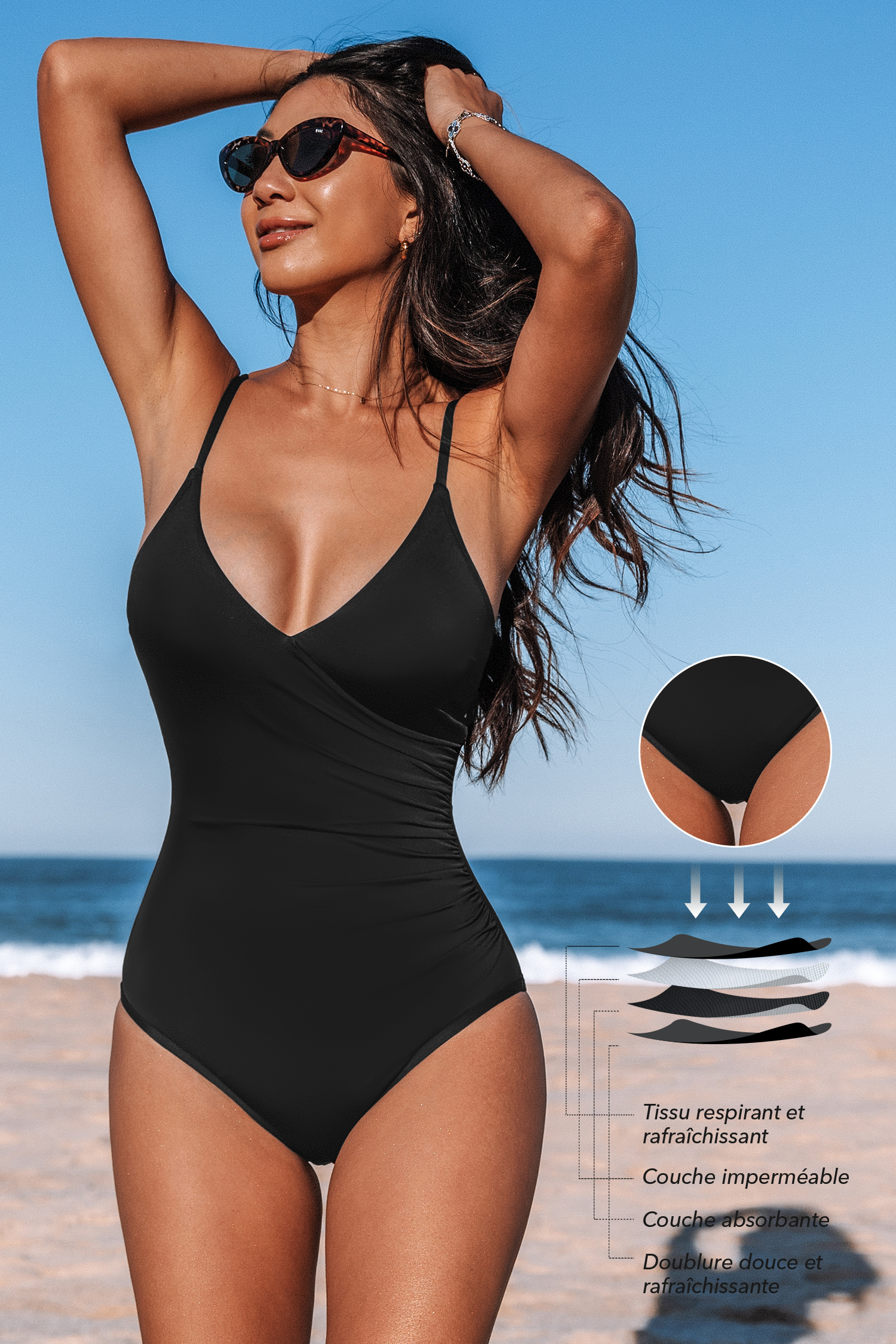 Maillot de bain une pièce menstruel col surplis à lacer dans le dos