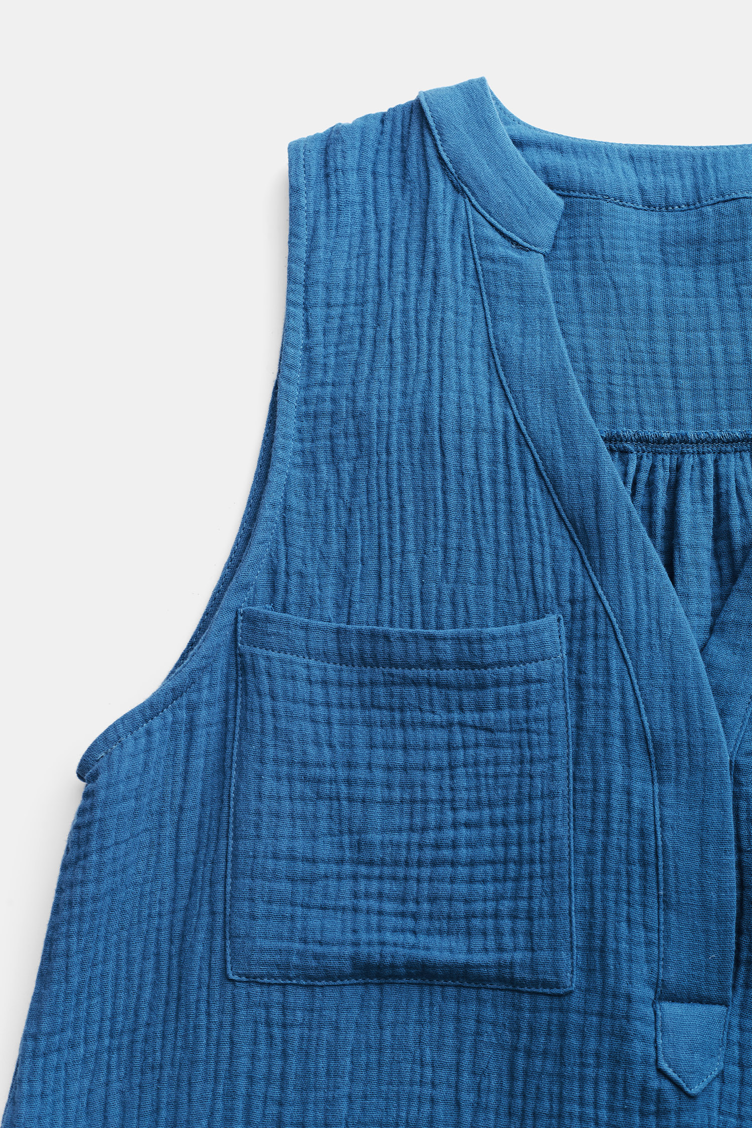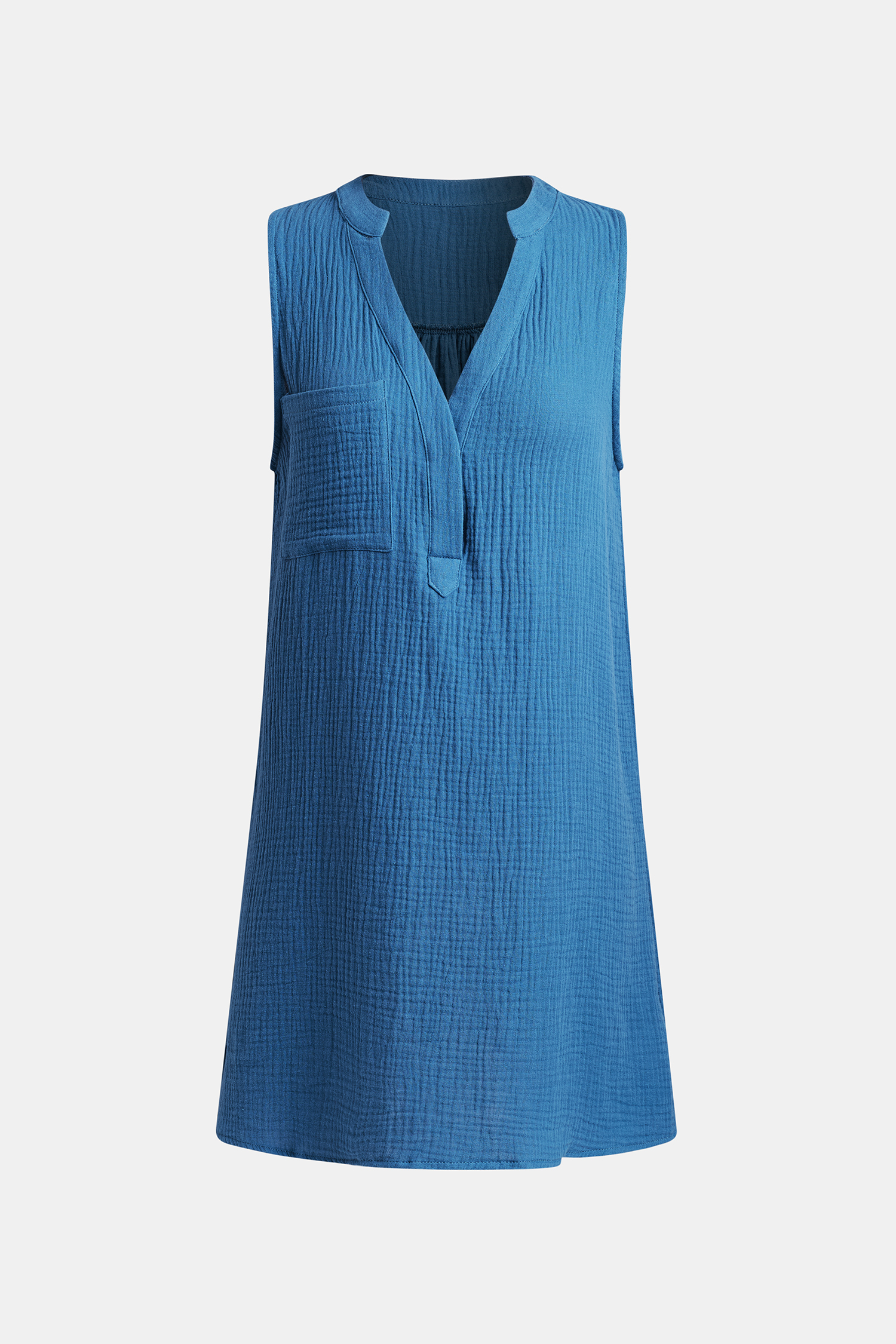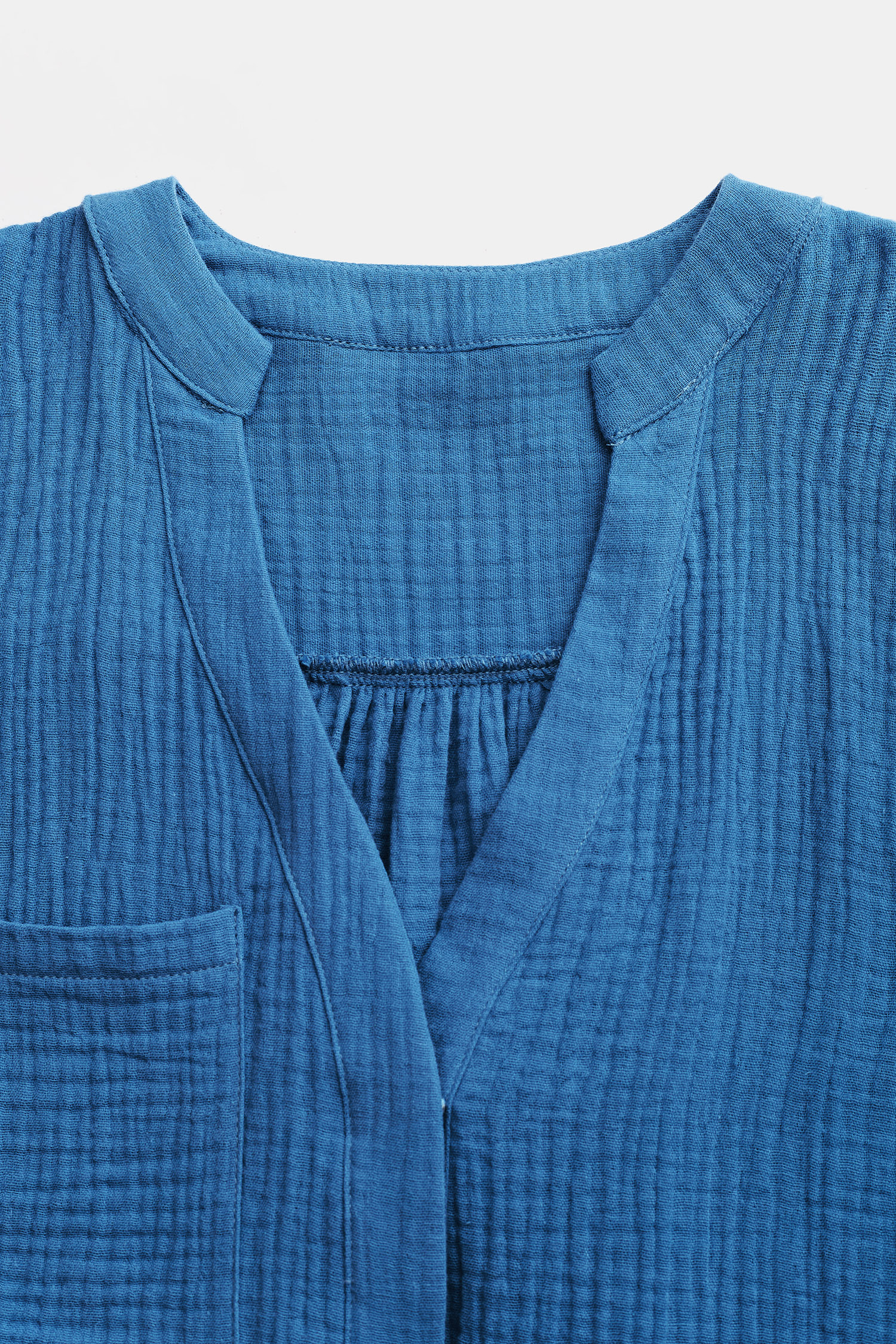 HomeRobe courte froissée à col cranté bleue