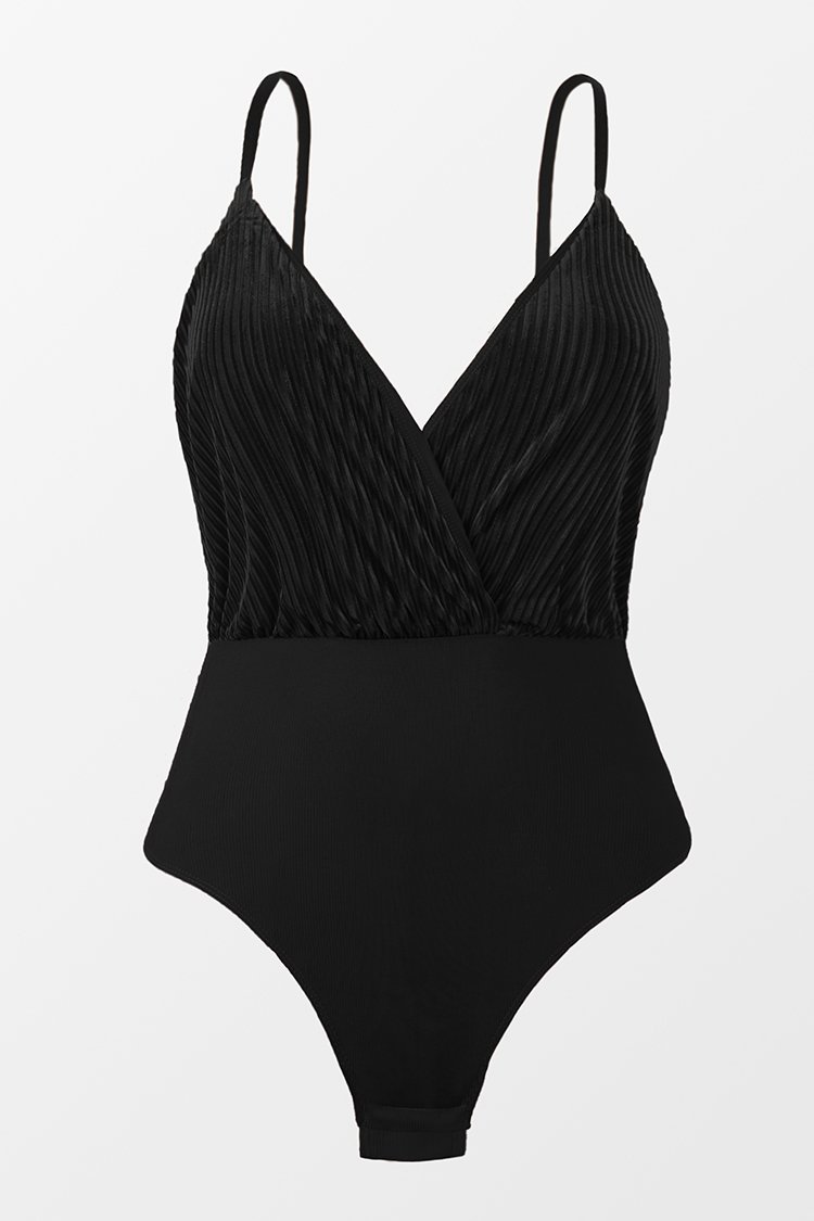 Body noir froncé à bretelles réglables