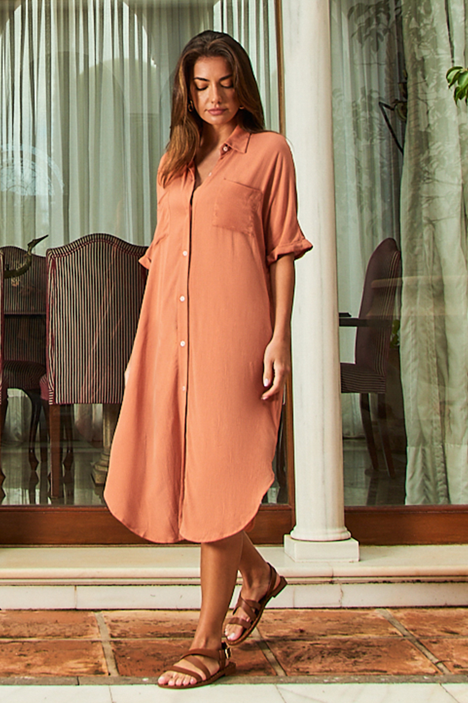 Robe chemise asymétrique à boutons sur le devant orange brûlé