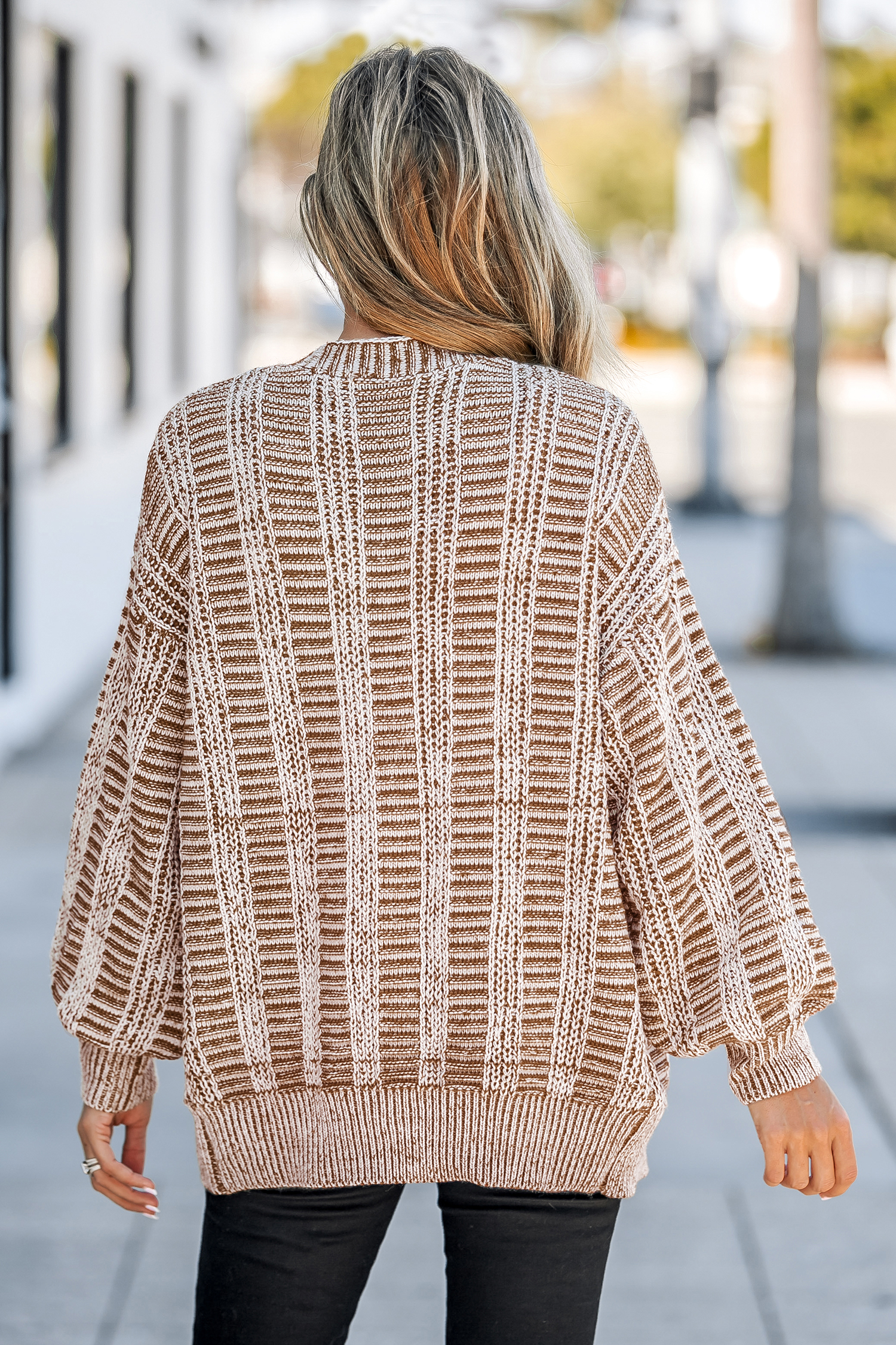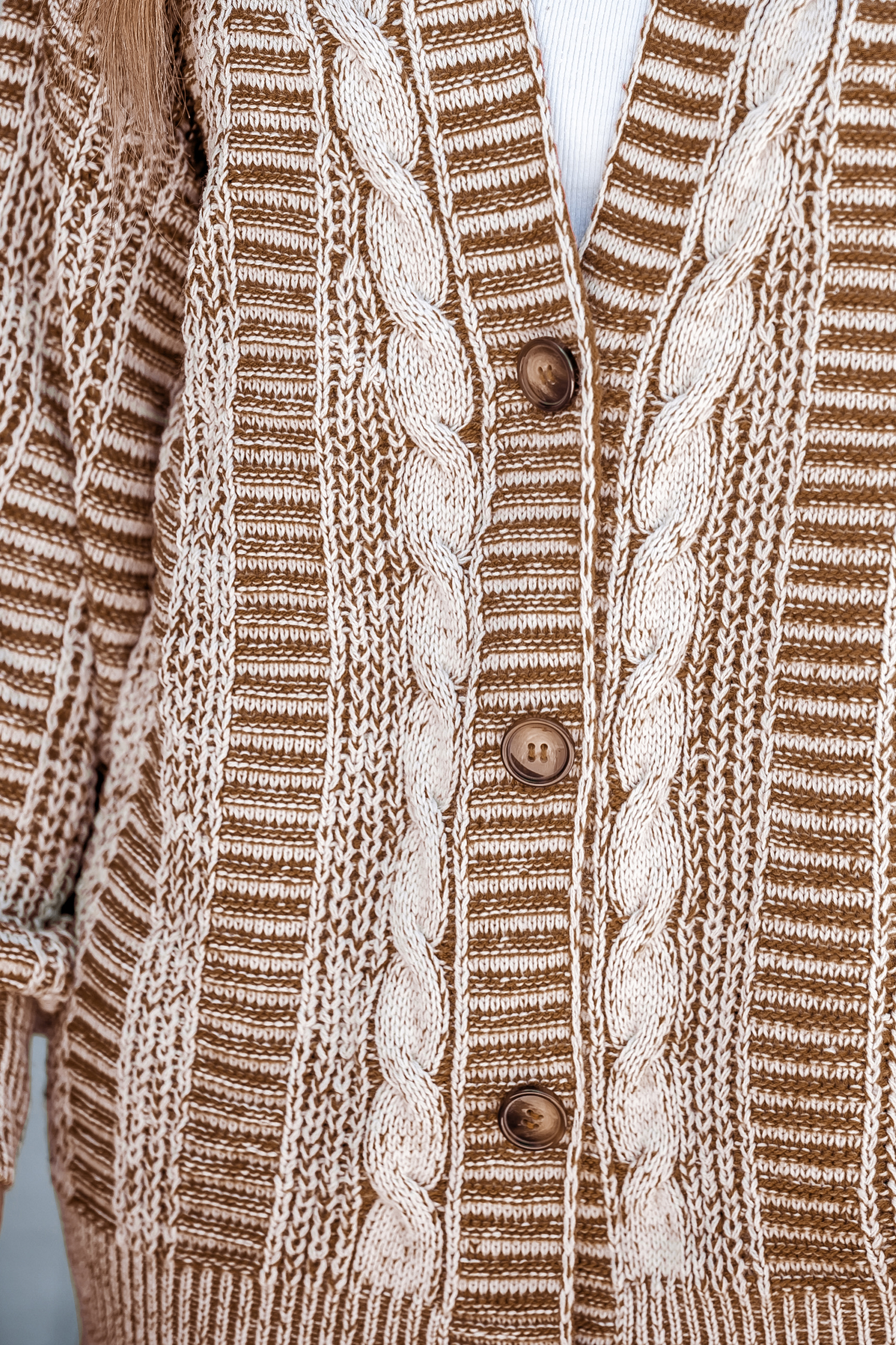 Cardigan avec boutons sur le devant en tricot torsadé à rayures