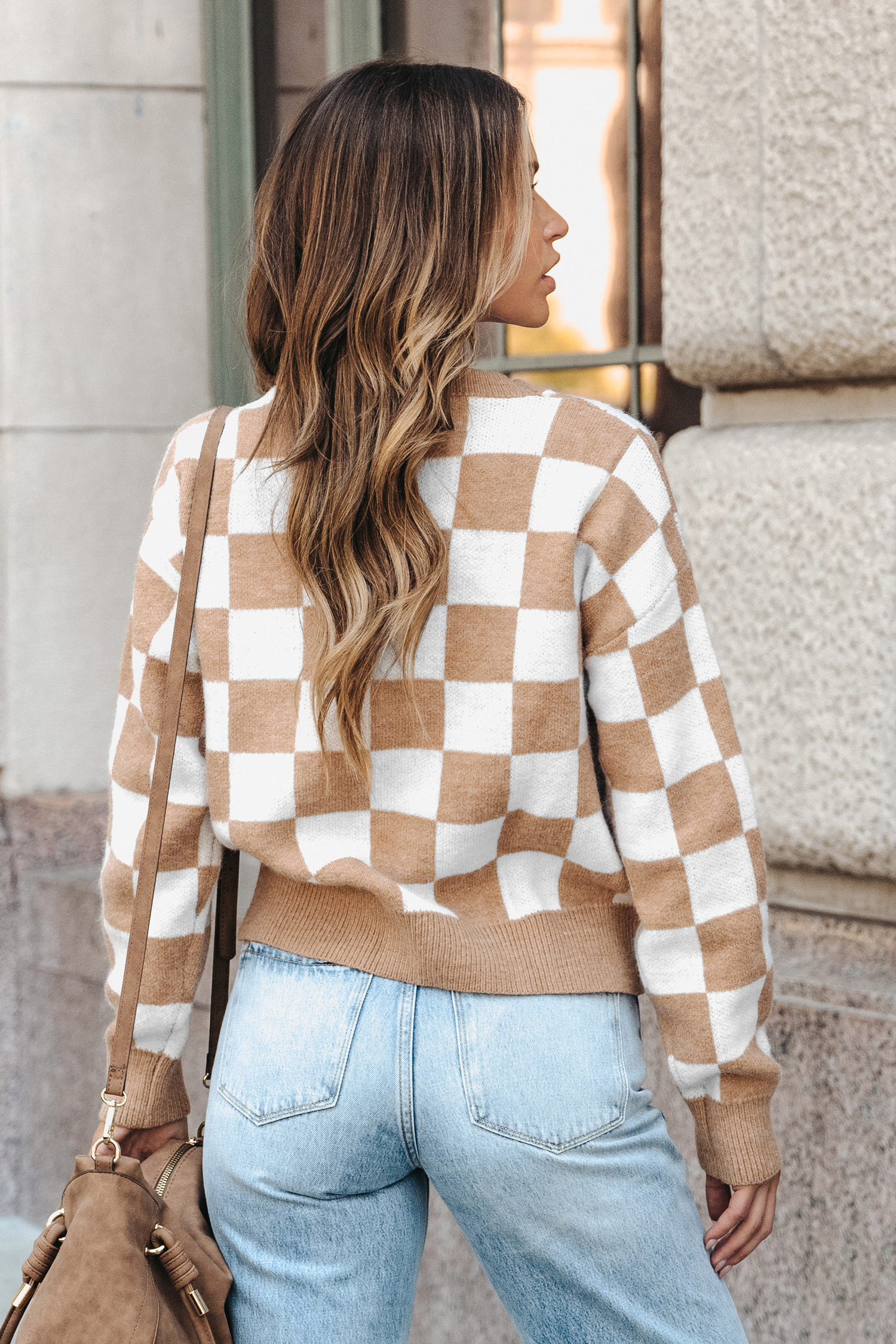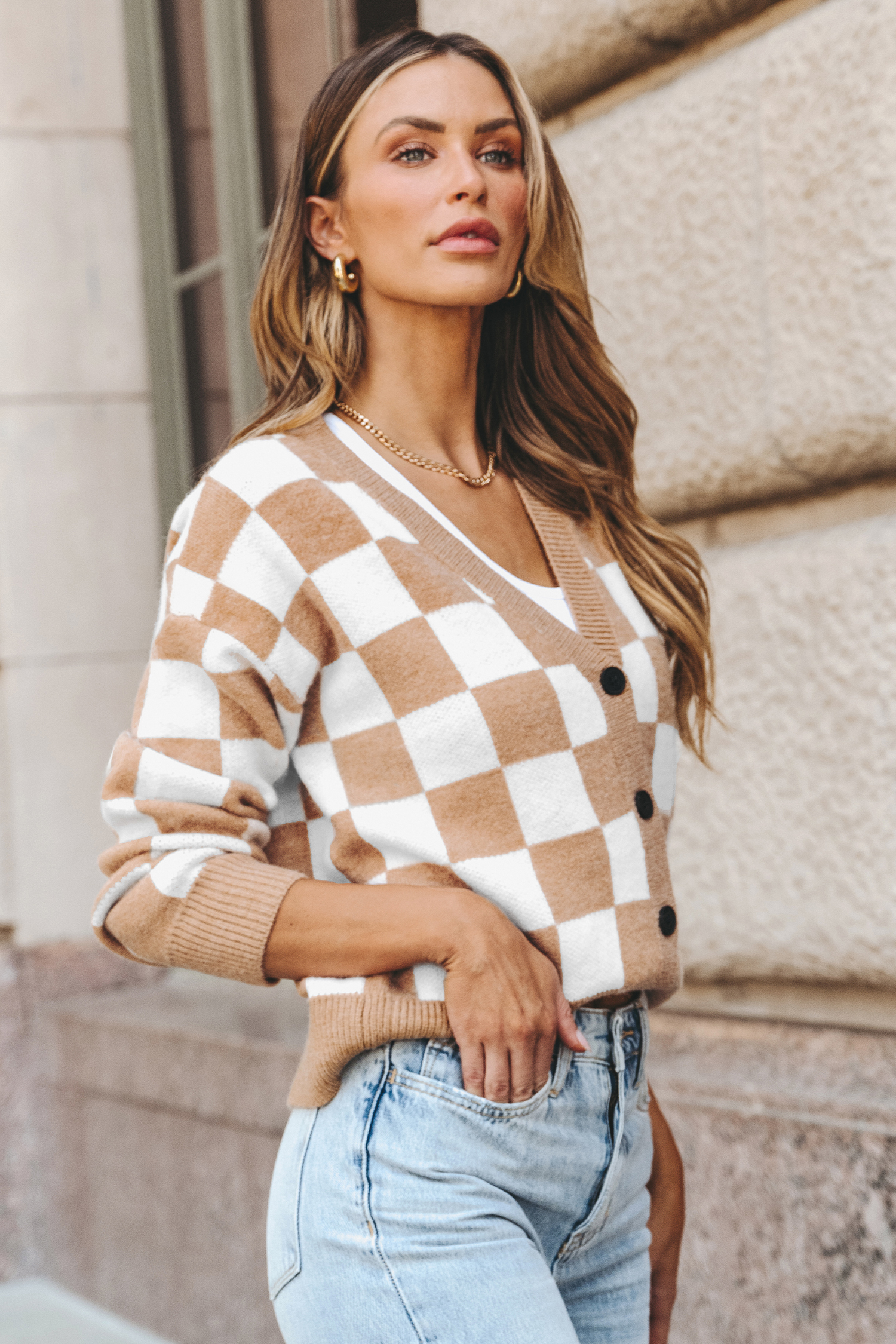Cardigan à boutons sur le devant en carreaux