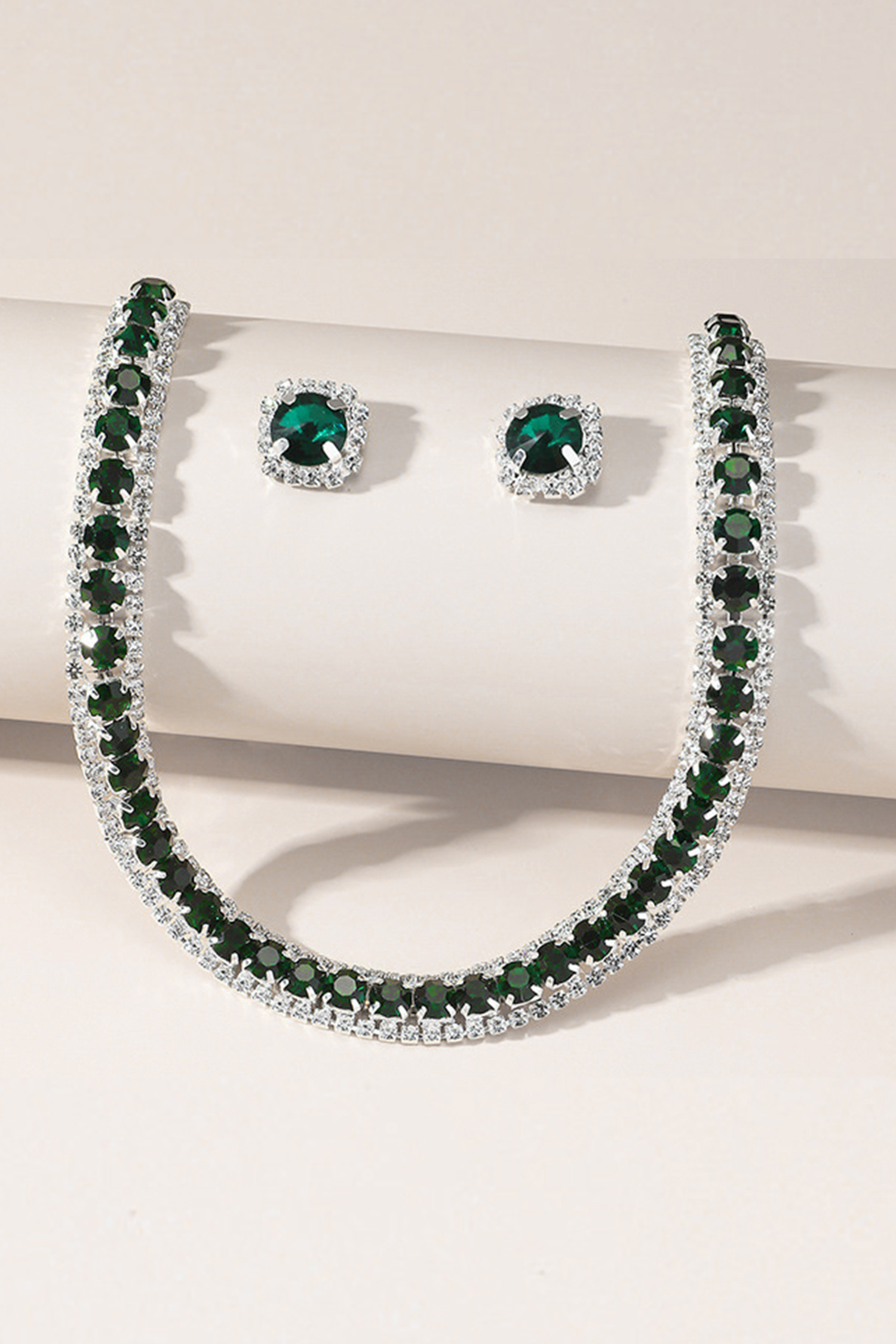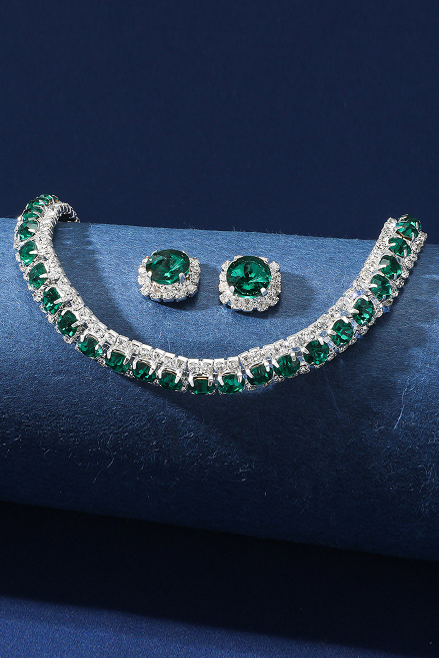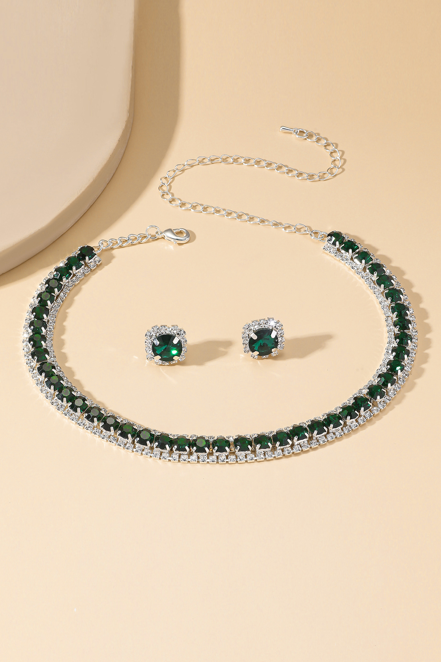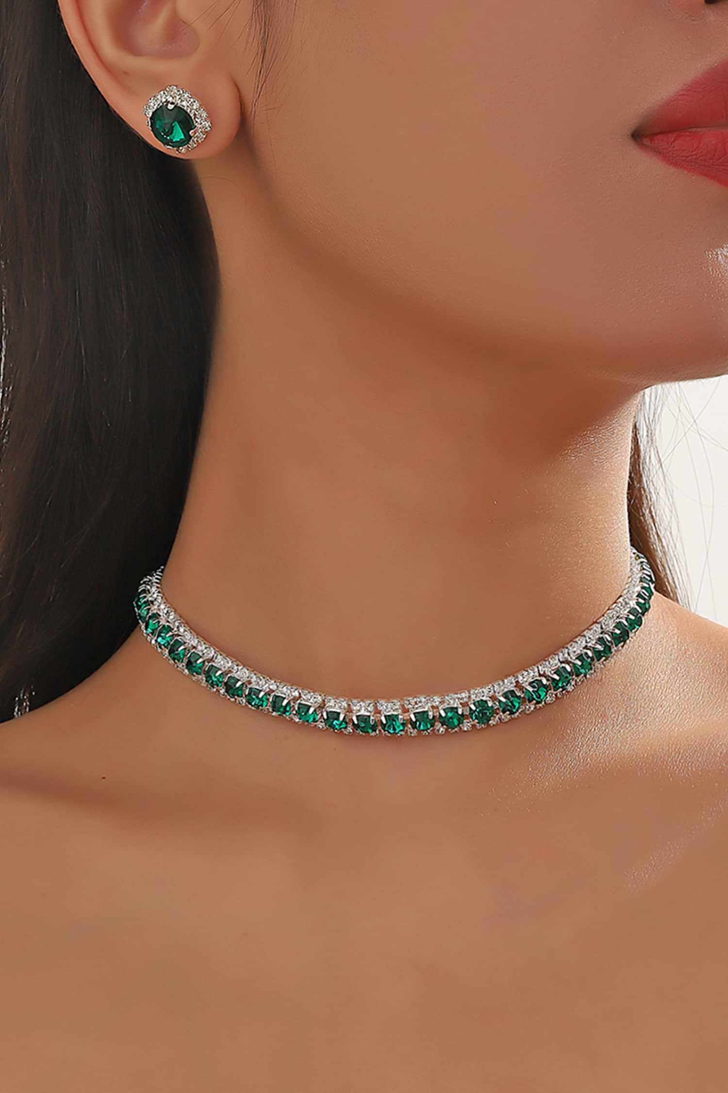 Collier ras-du-cou en cristal clair et fausse émeraude