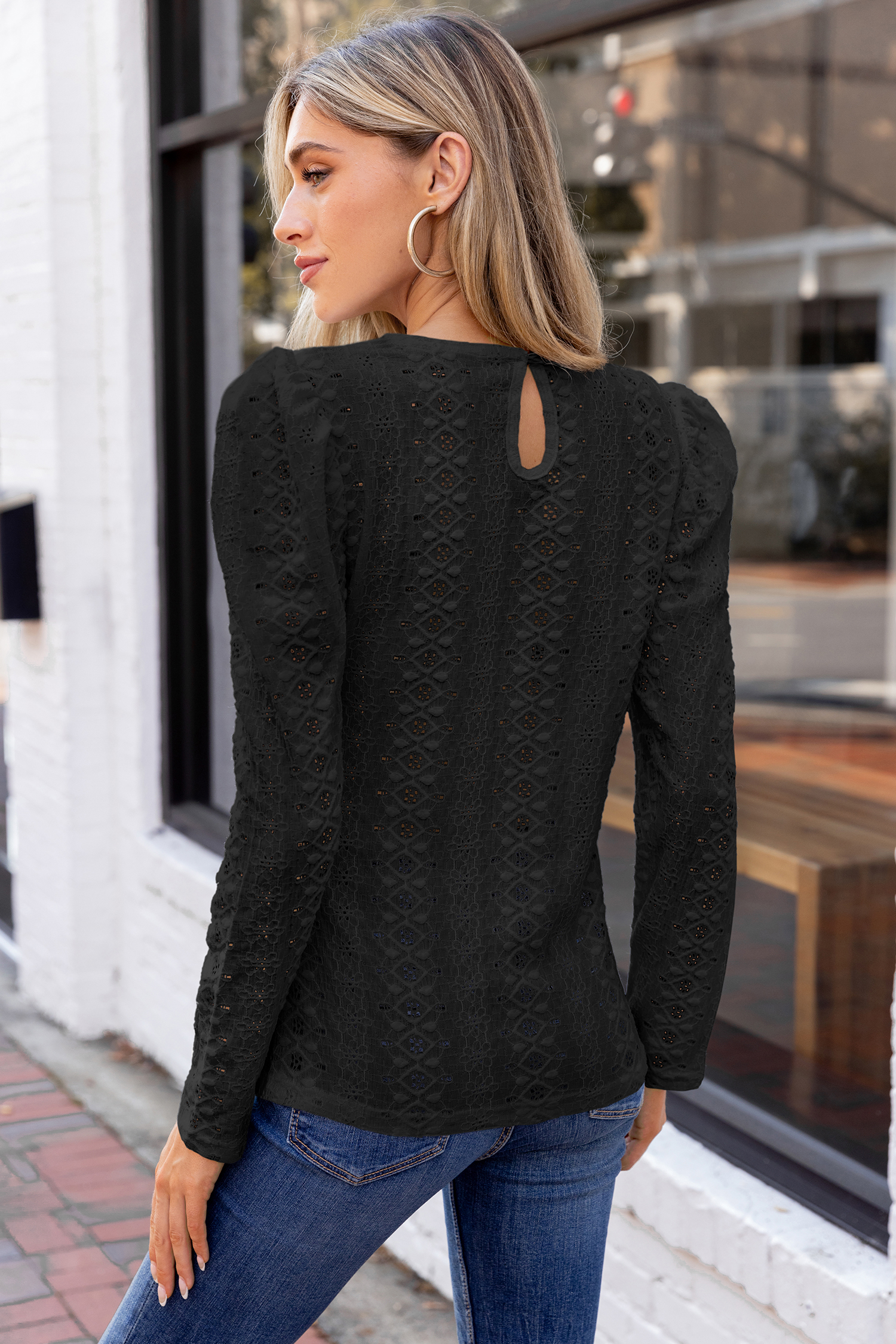 Ce haut noir apporte une élégance sobre et prête pour le soir ! Son encolure ronde et ses manches longues créent une coupe classique et soignée, idéale pour les sorties nocturnes.