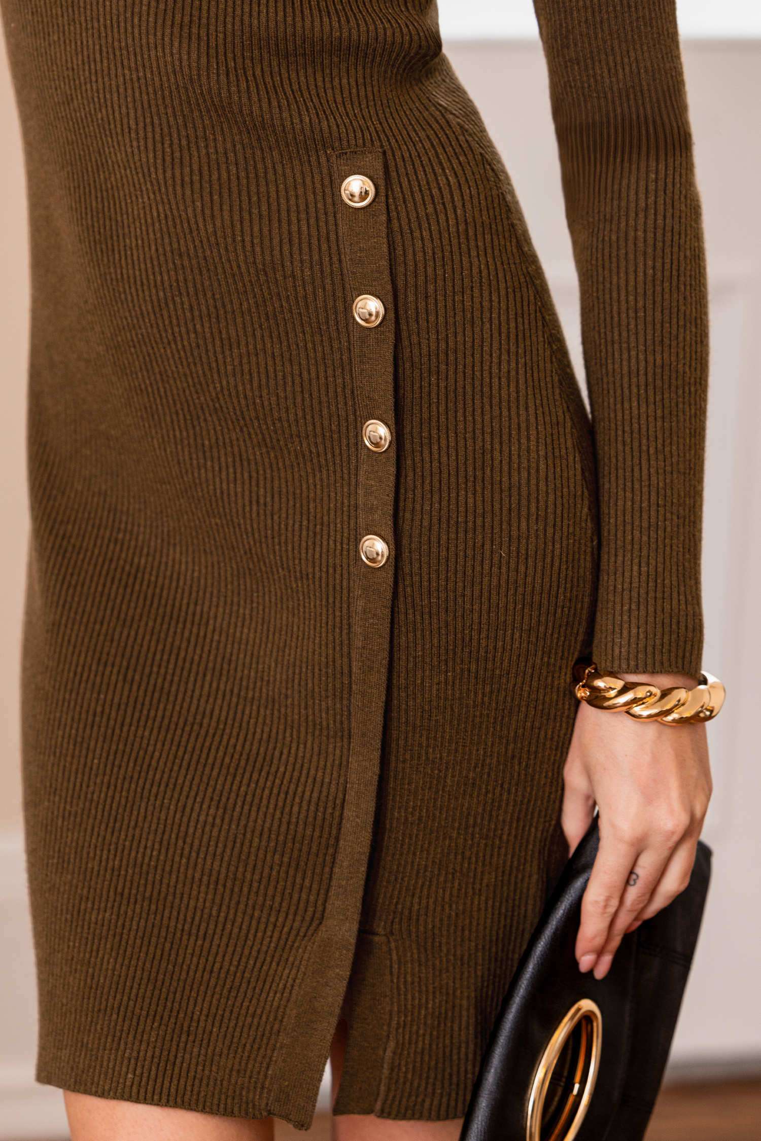 La robe pull marron allie chaleur et sophistication ! Son col rond, ses manches longues, sa longueur midi et sa fente latérale forment une allure chic et séduisante du jour à la nuit.