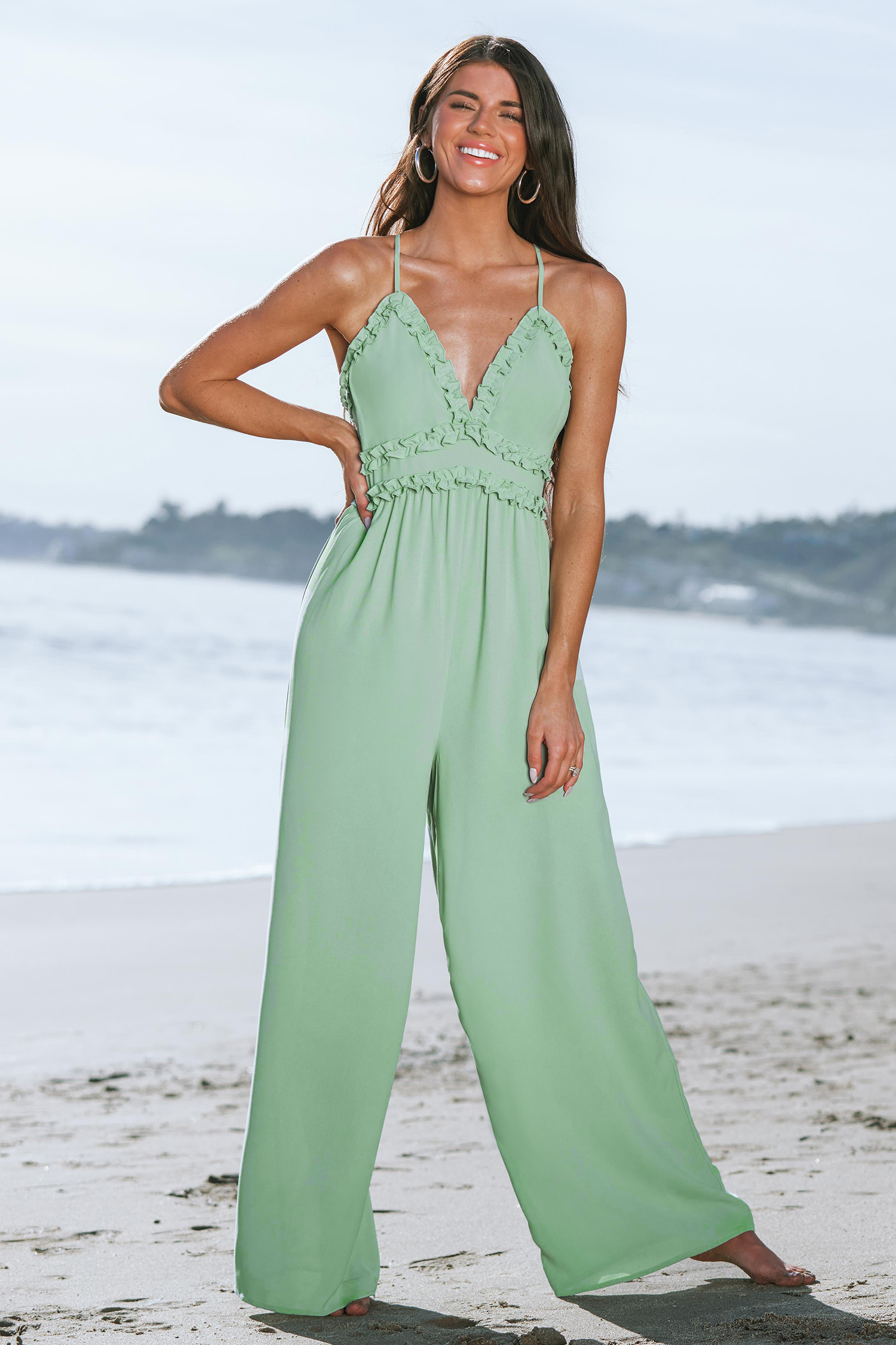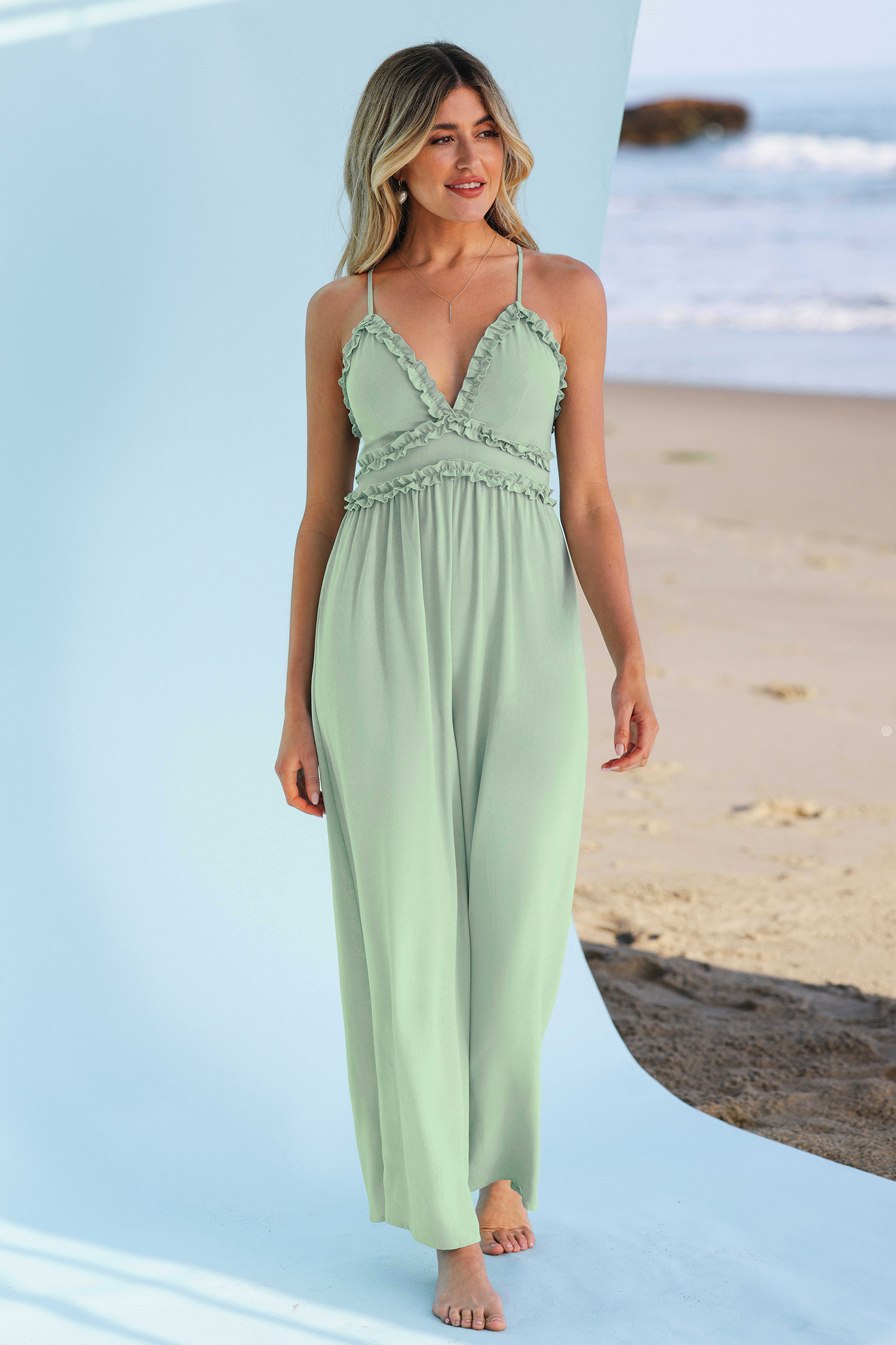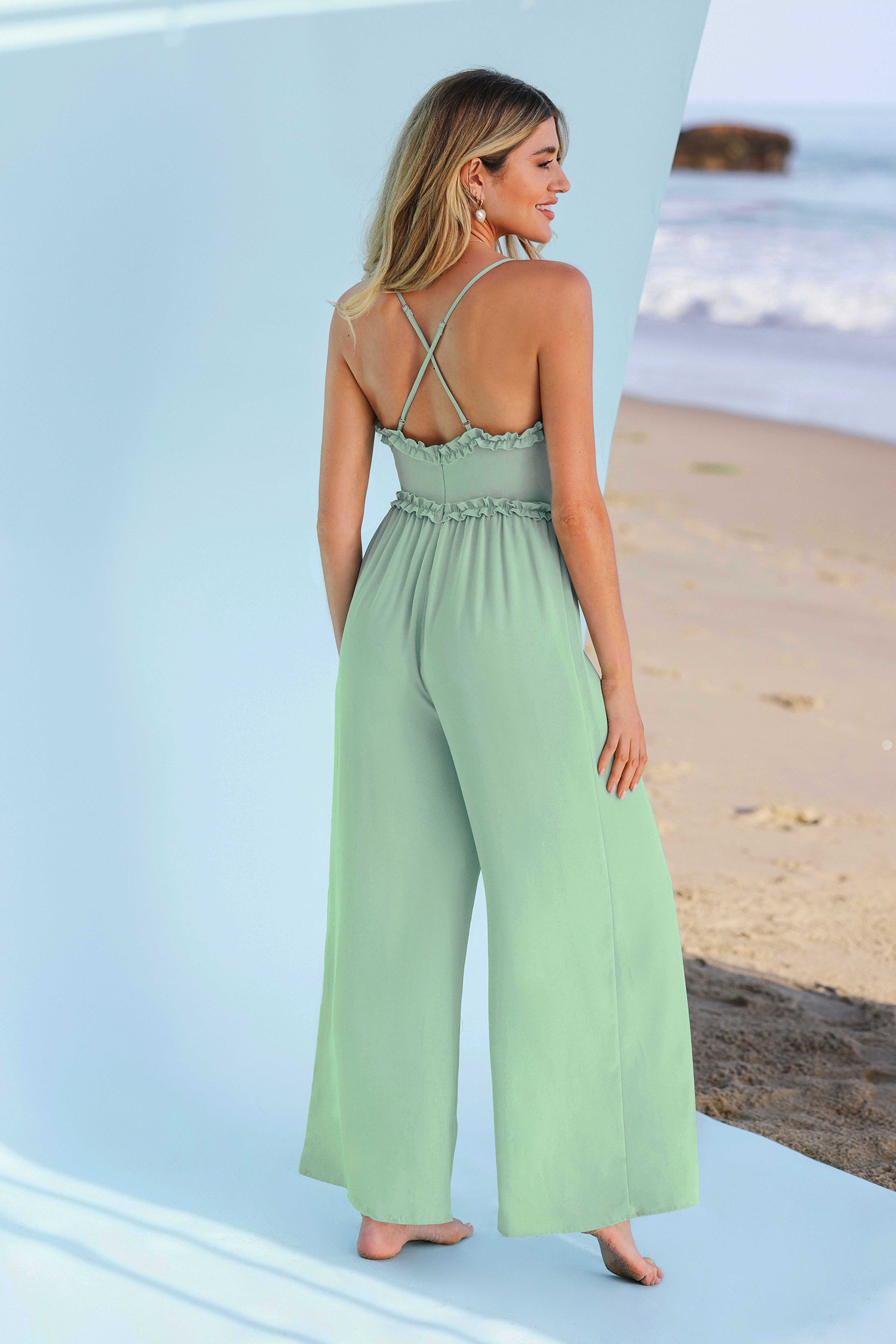 Combinaison à volants et croisée dans le dos pour la mariage de plage