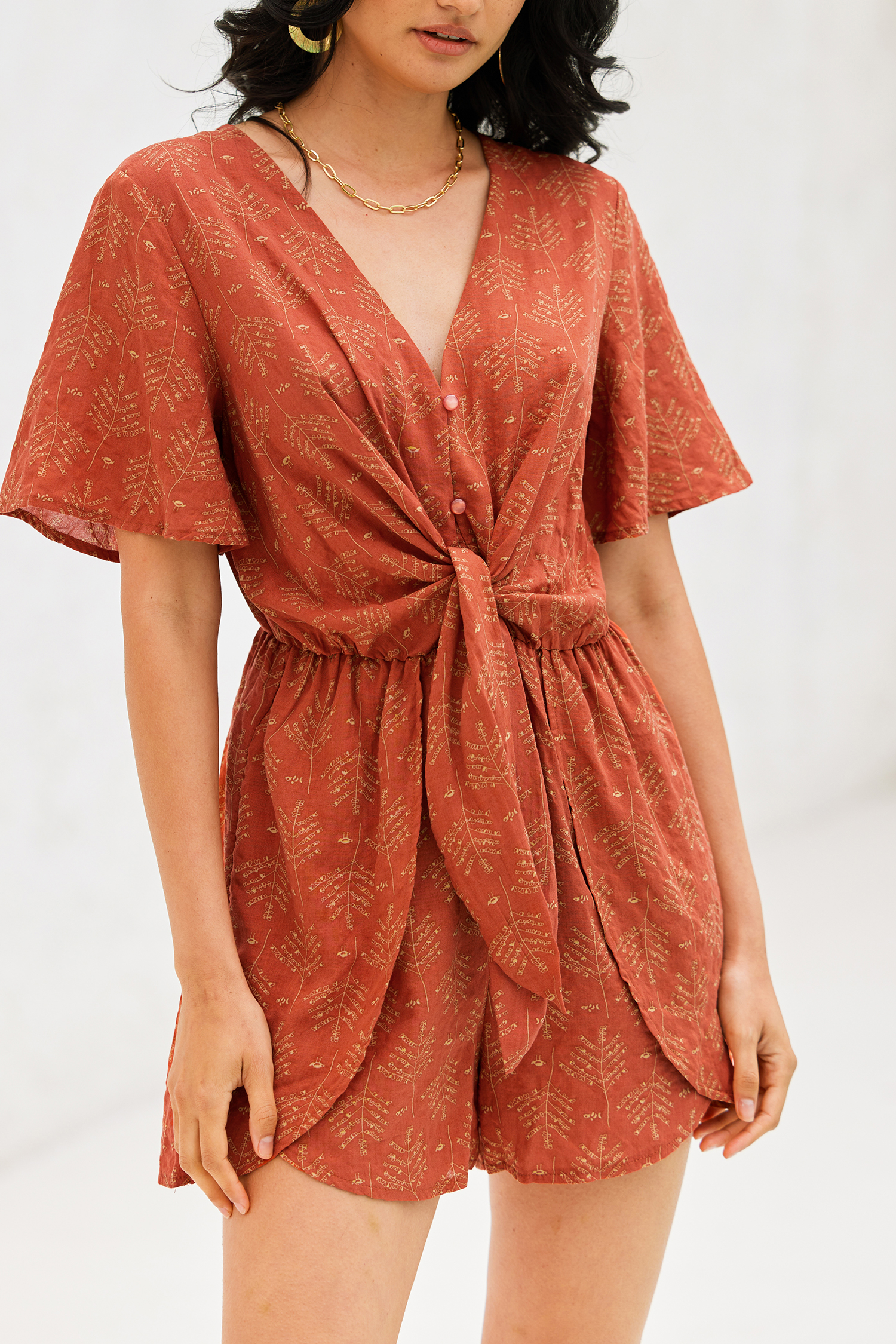 Combishort à ceinture avec imprimé feuilles abstraites