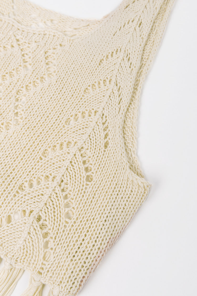 Cover up court en tricot gaufré à ourlet torsadé beige