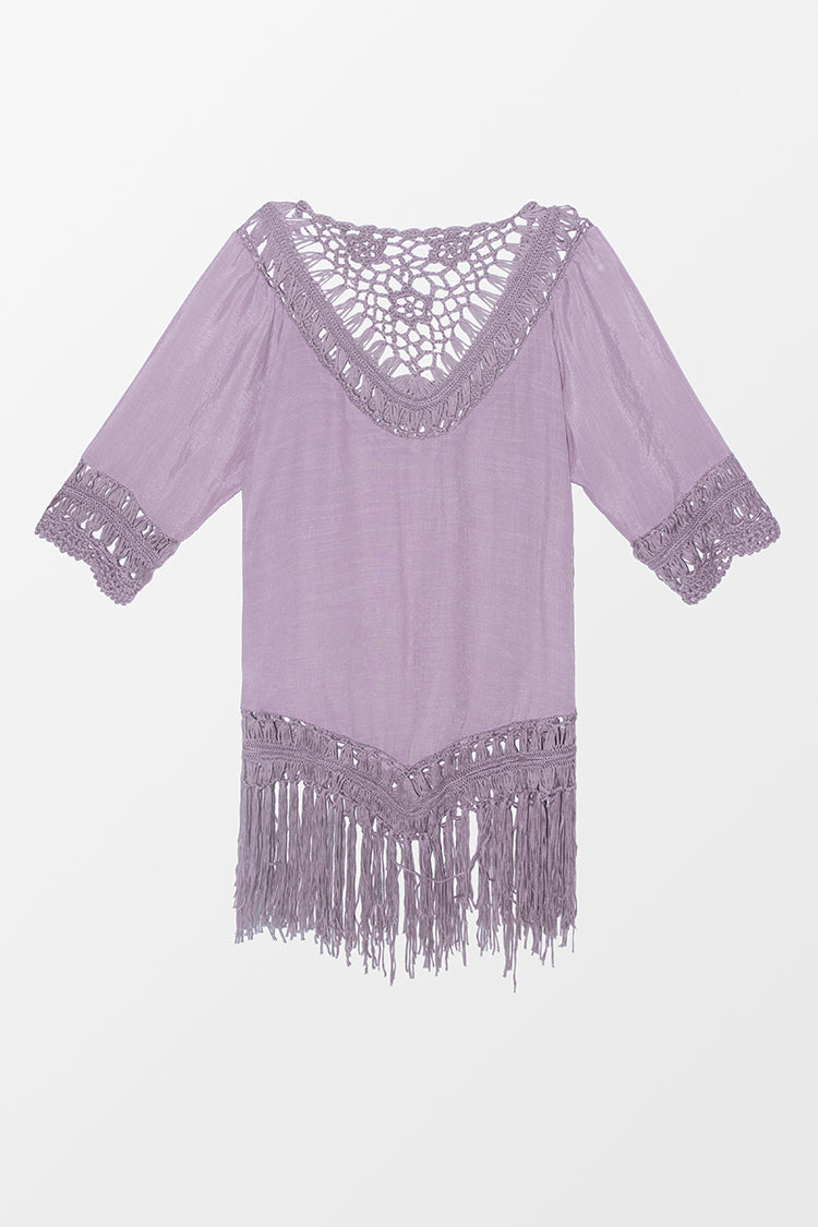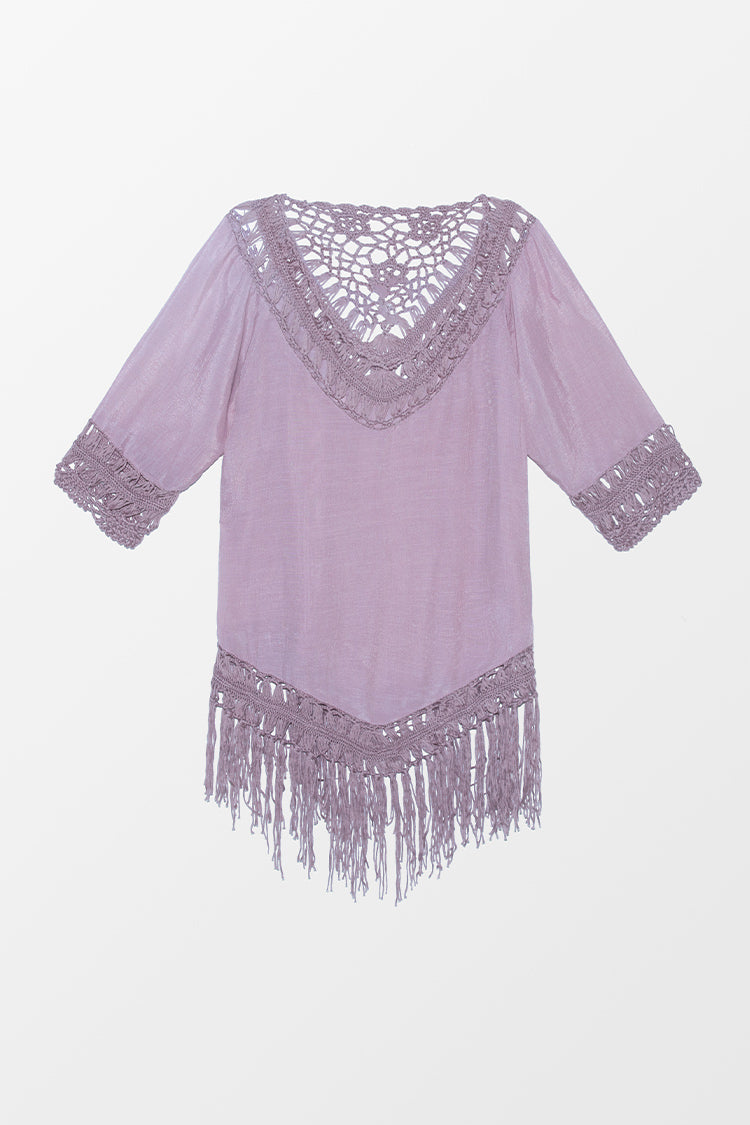 HomeCover up à demi-manches à franges au crochet