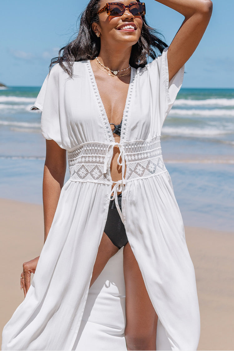 Cover up court en tricot gaufré à ourlet torsadé beige