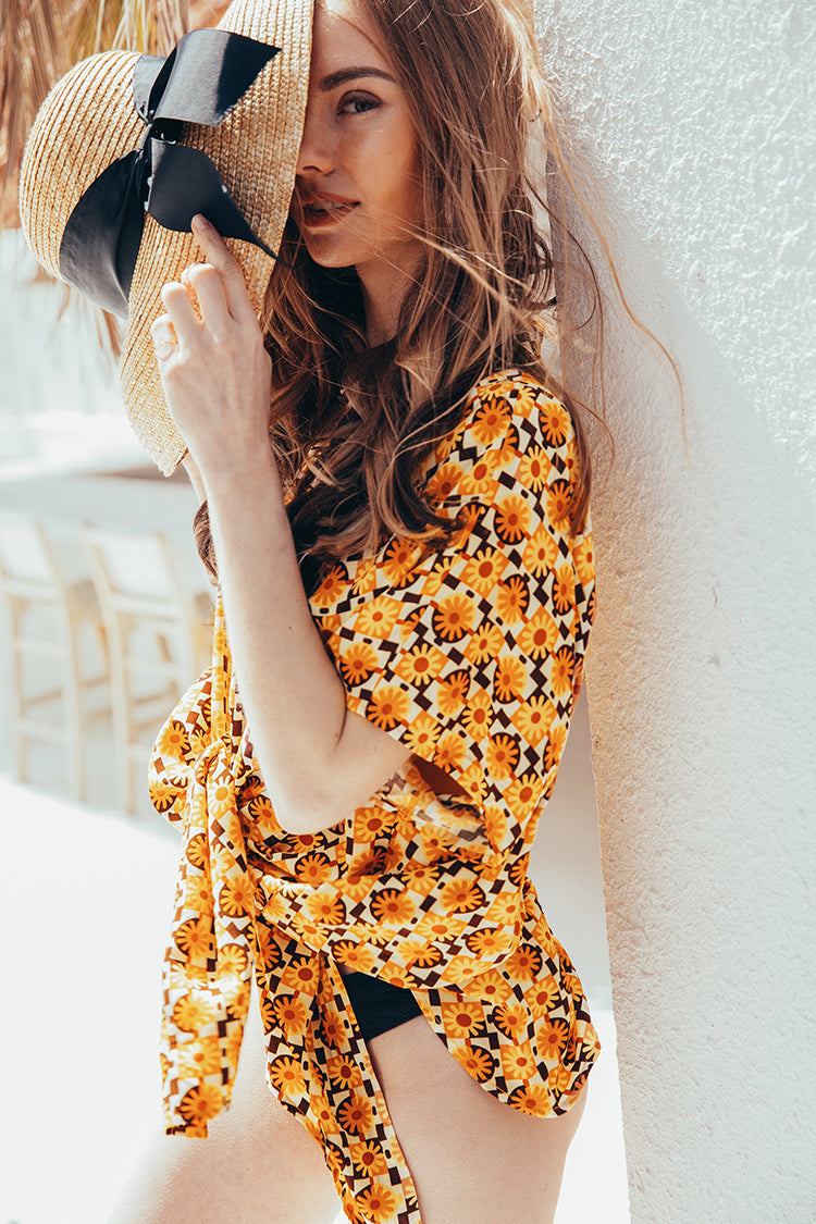 Cover up court en tricot gaufré à ourlet torsadé beige