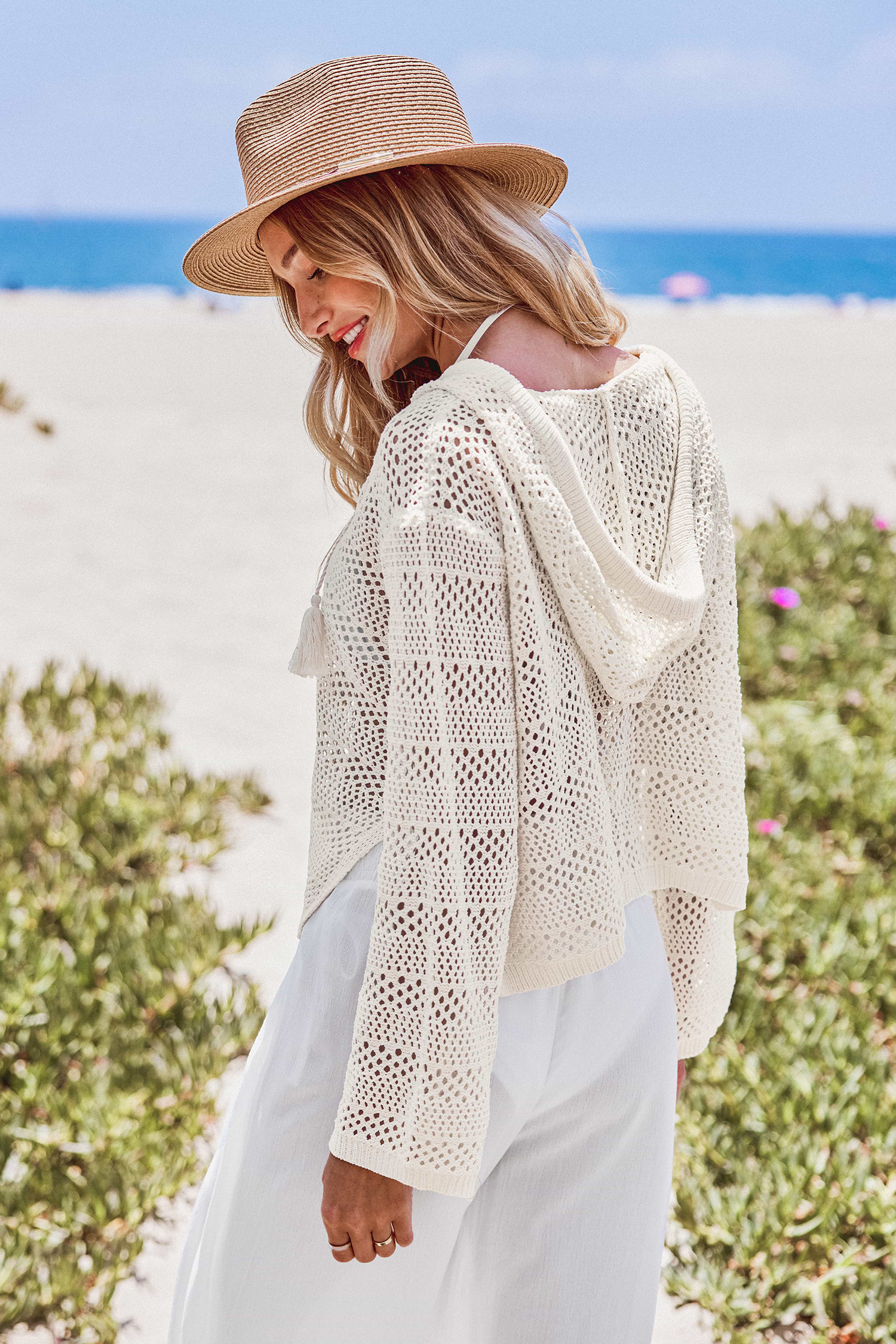 Cover up en crochet à glands noués avec manches longues