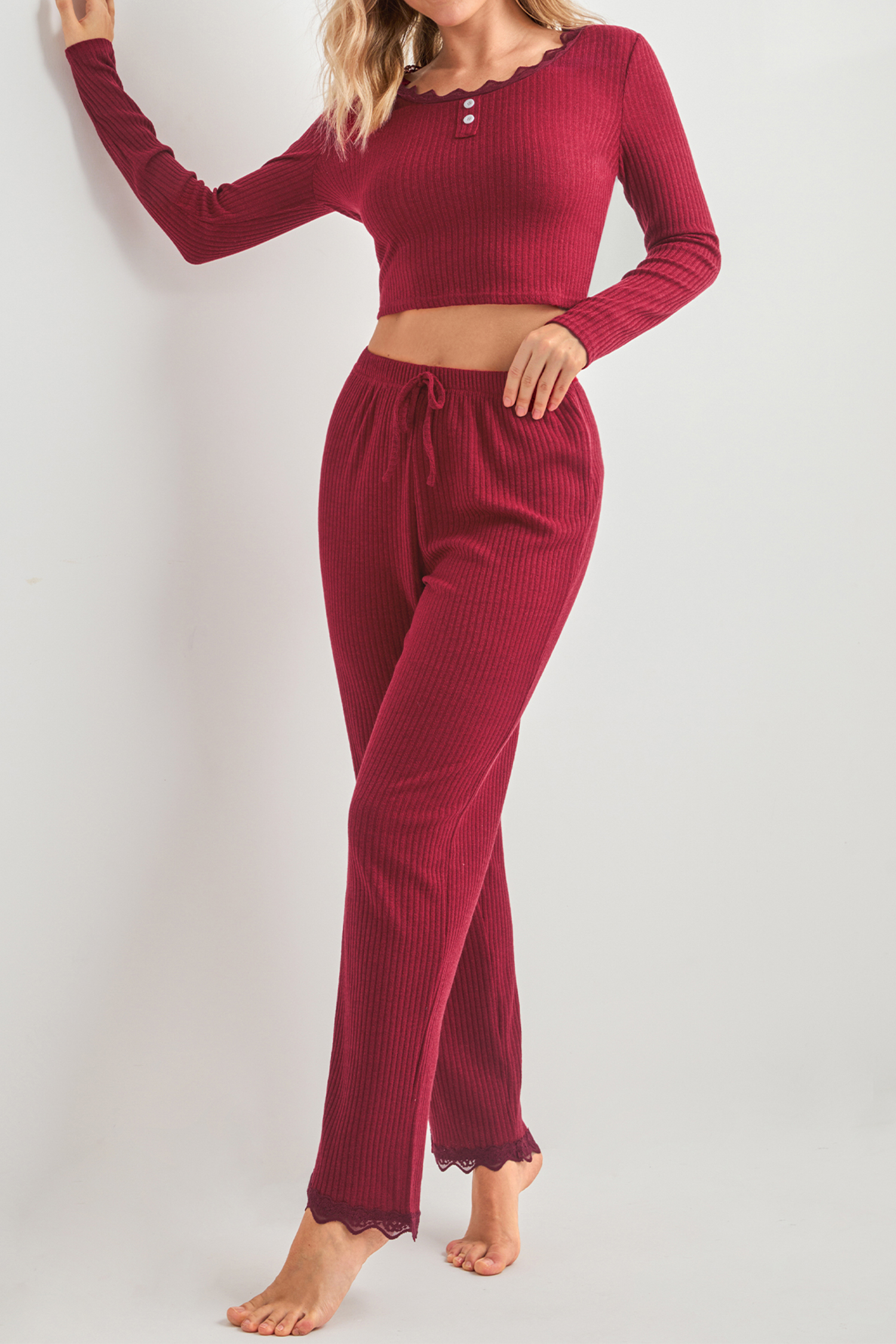 Ensemble pyjama haut à manches longues et pantalon rouge foncé