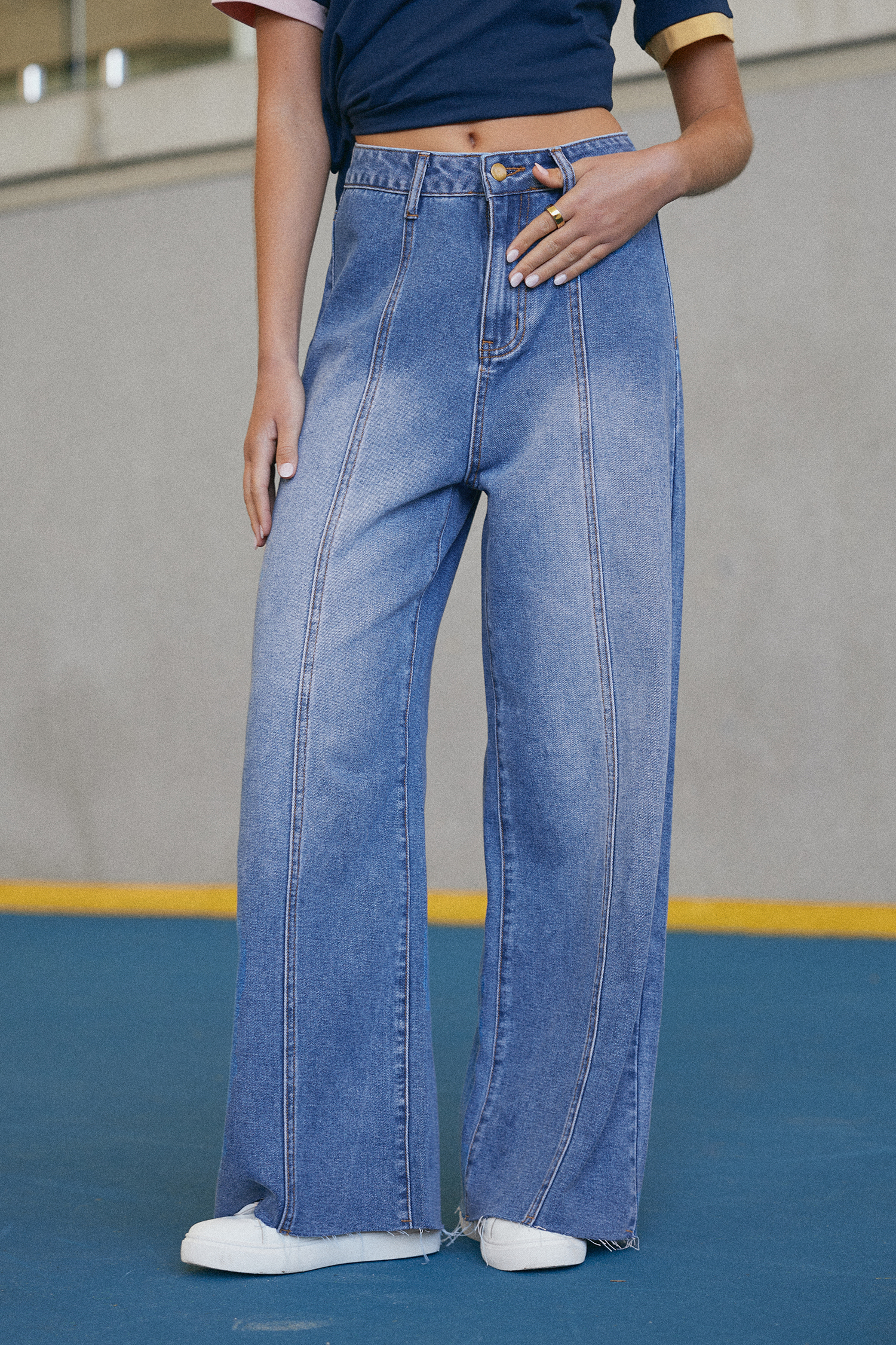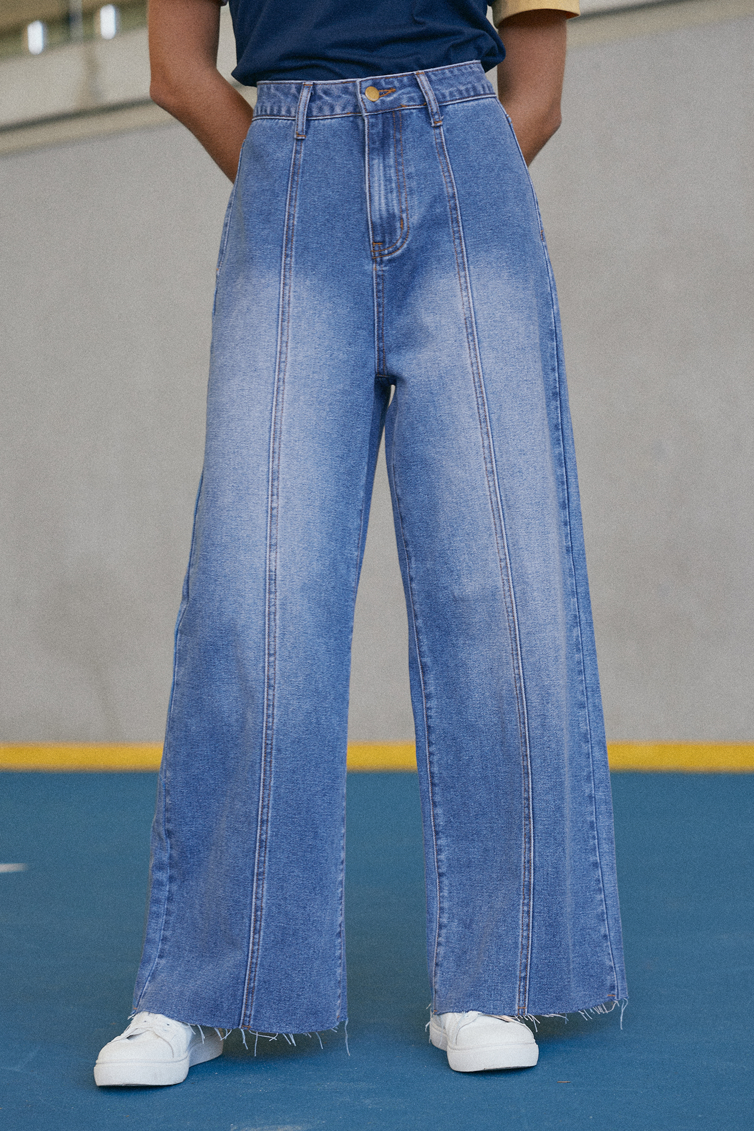 Jean en denim à coupe brute et jambe large
