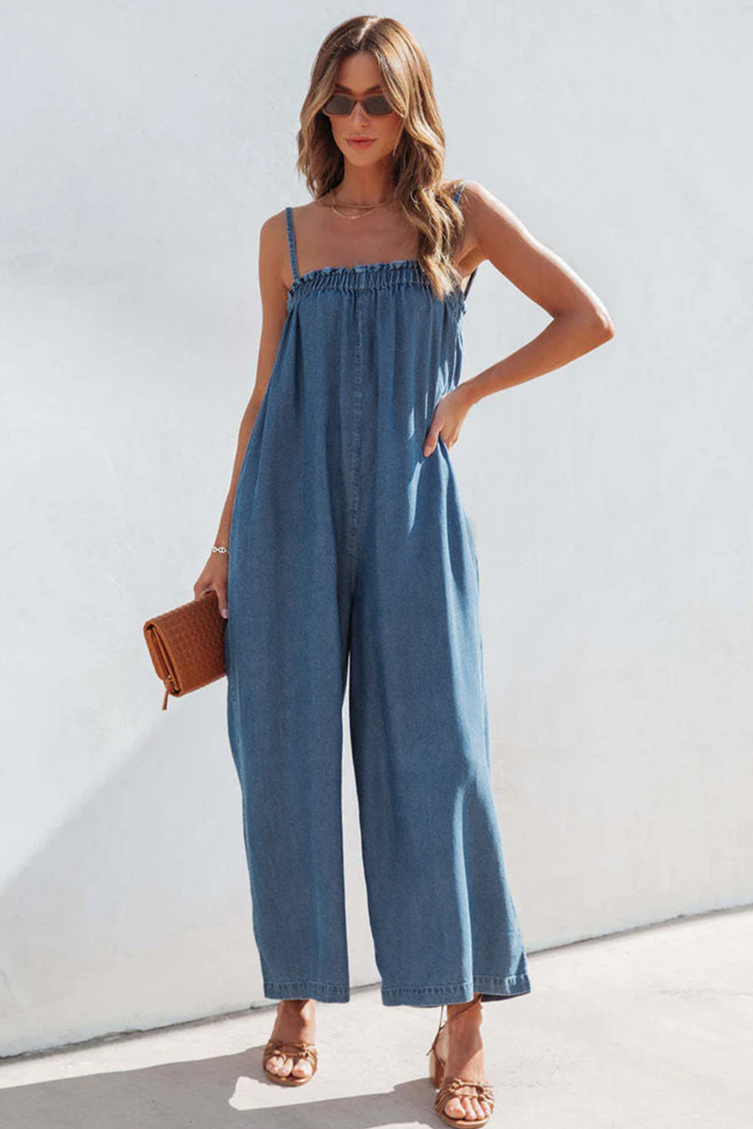 Combinaison en pur coton à jambes larges en denim