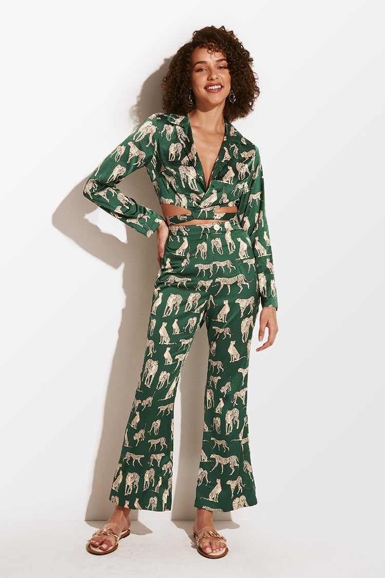 Ensemble de pyjama haut à manches longues et pantalon vert