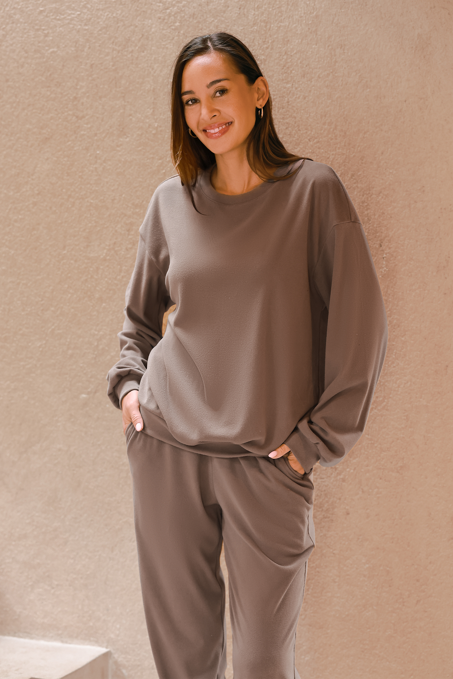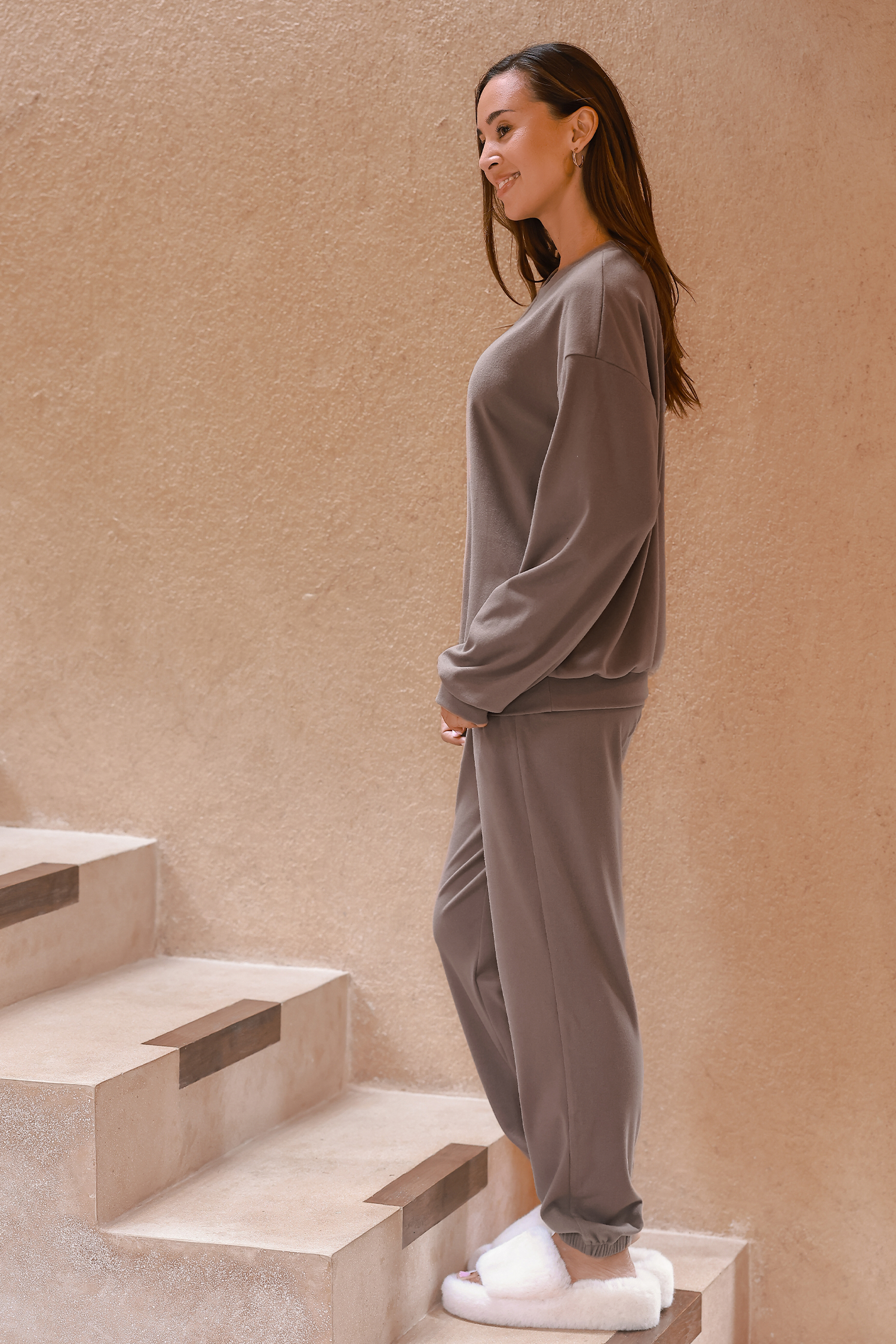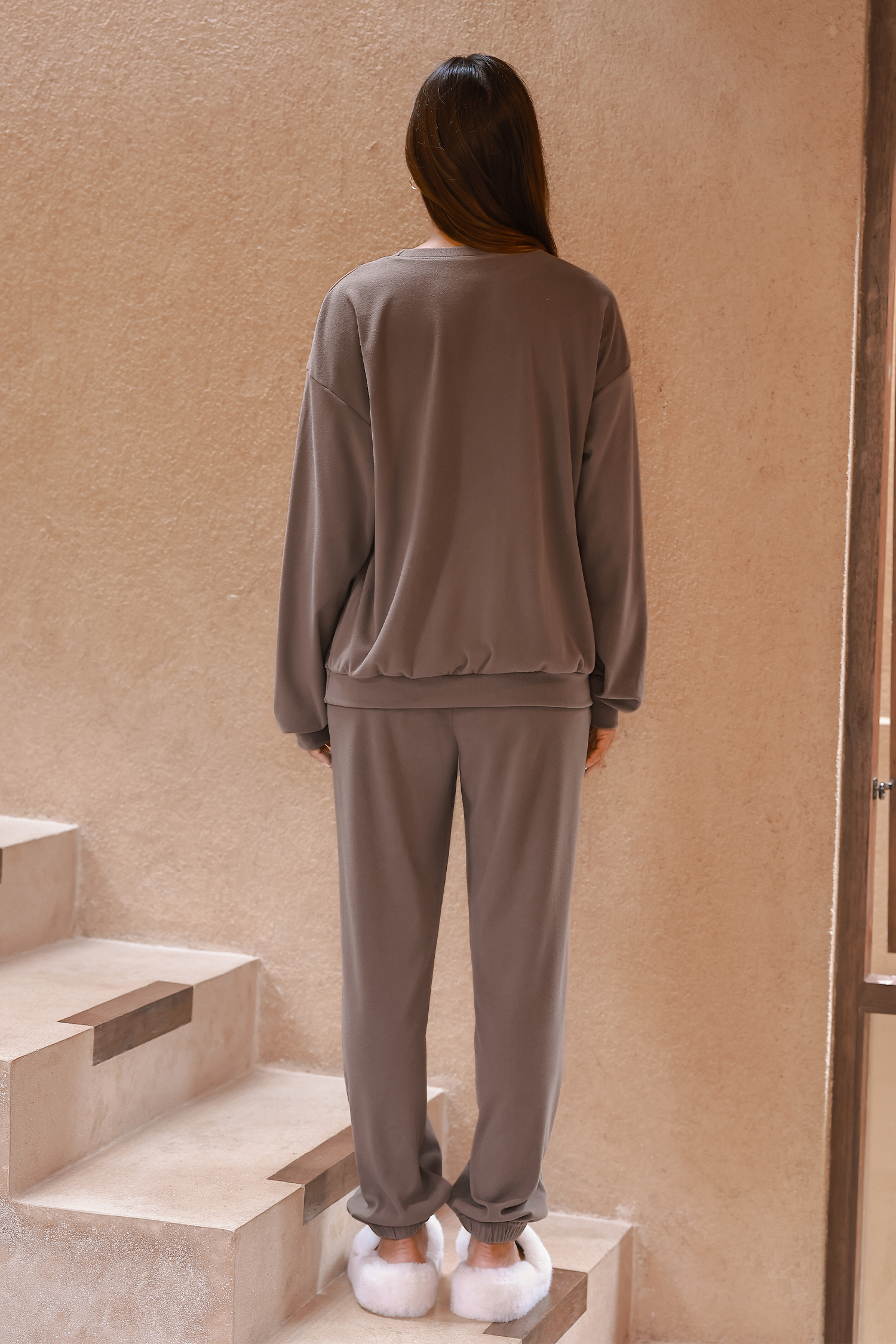 Ensemble de pyjama avec haut à col roulé et jogging marron