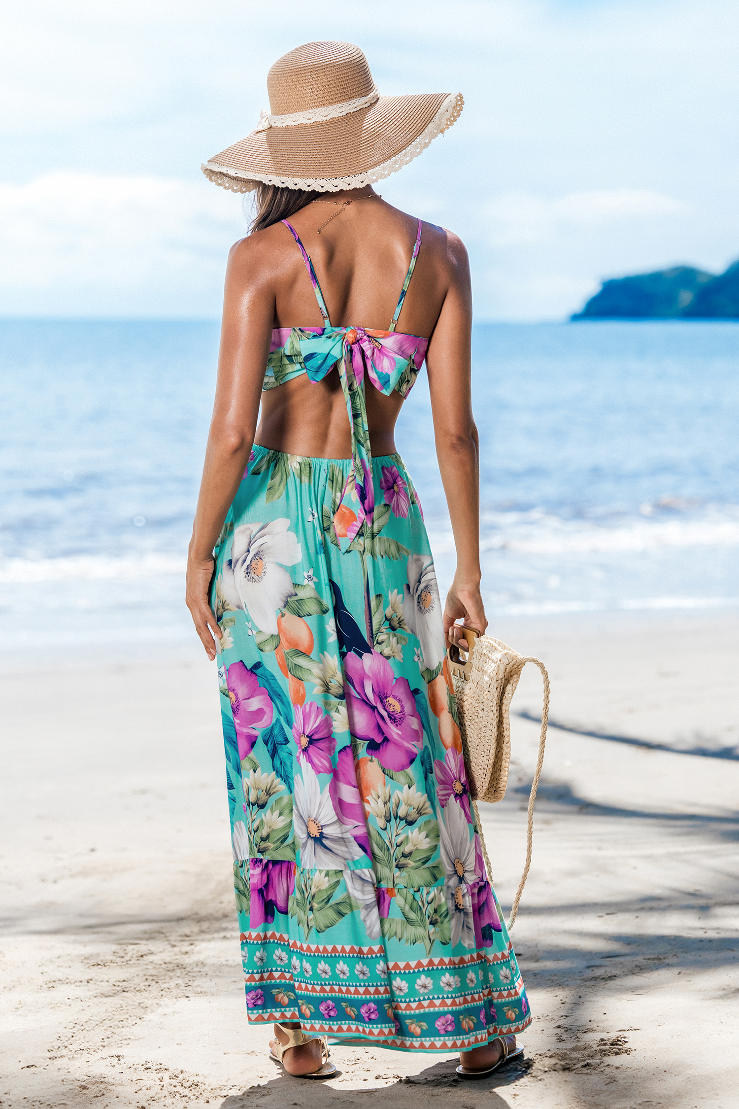 HomeRobe longue tropicale col plongeant découpes