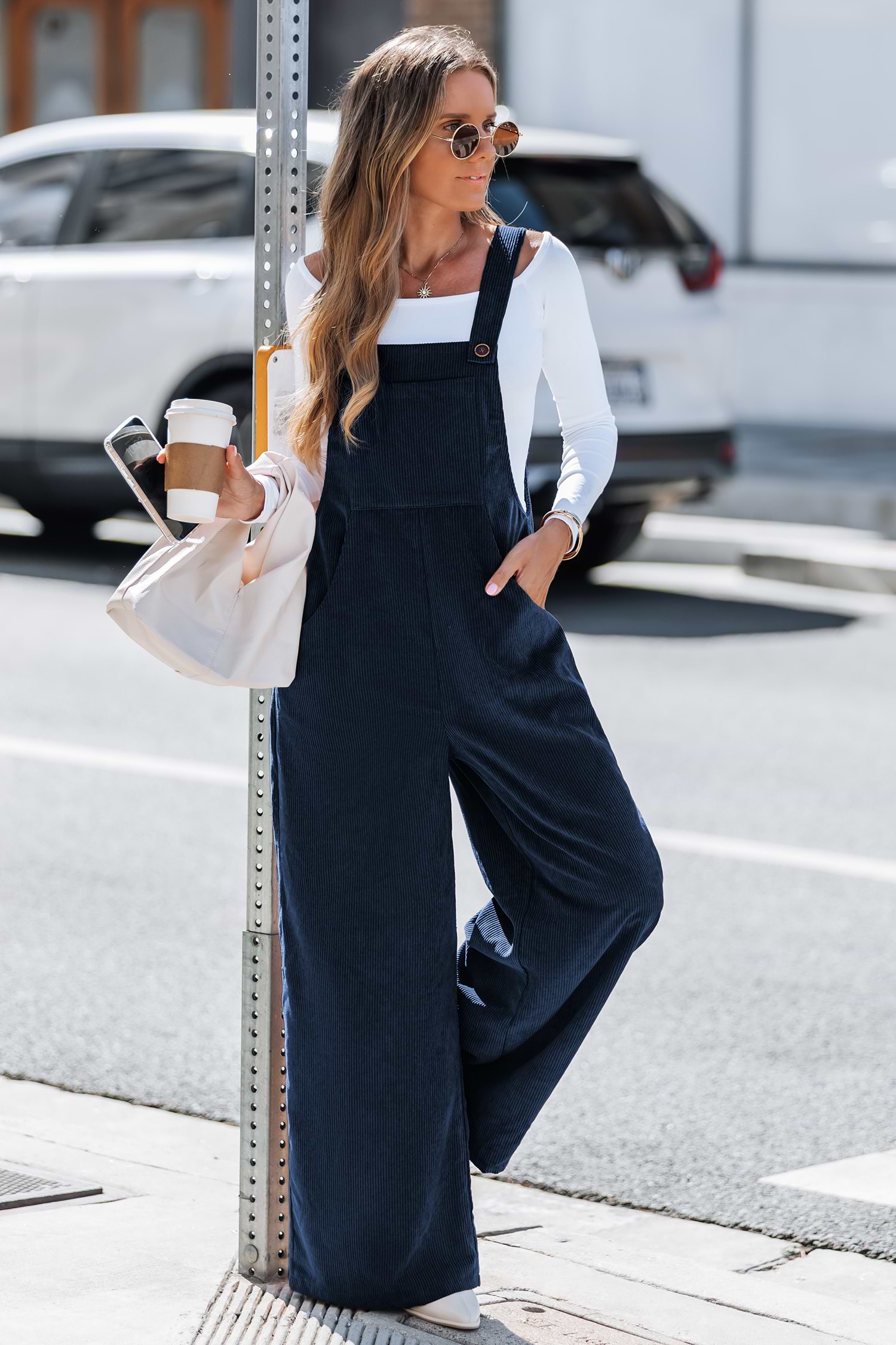La combinaison bleue en maille à col carré et jambes larges offre une allure détendue mais stylée pour les moments cocooning.