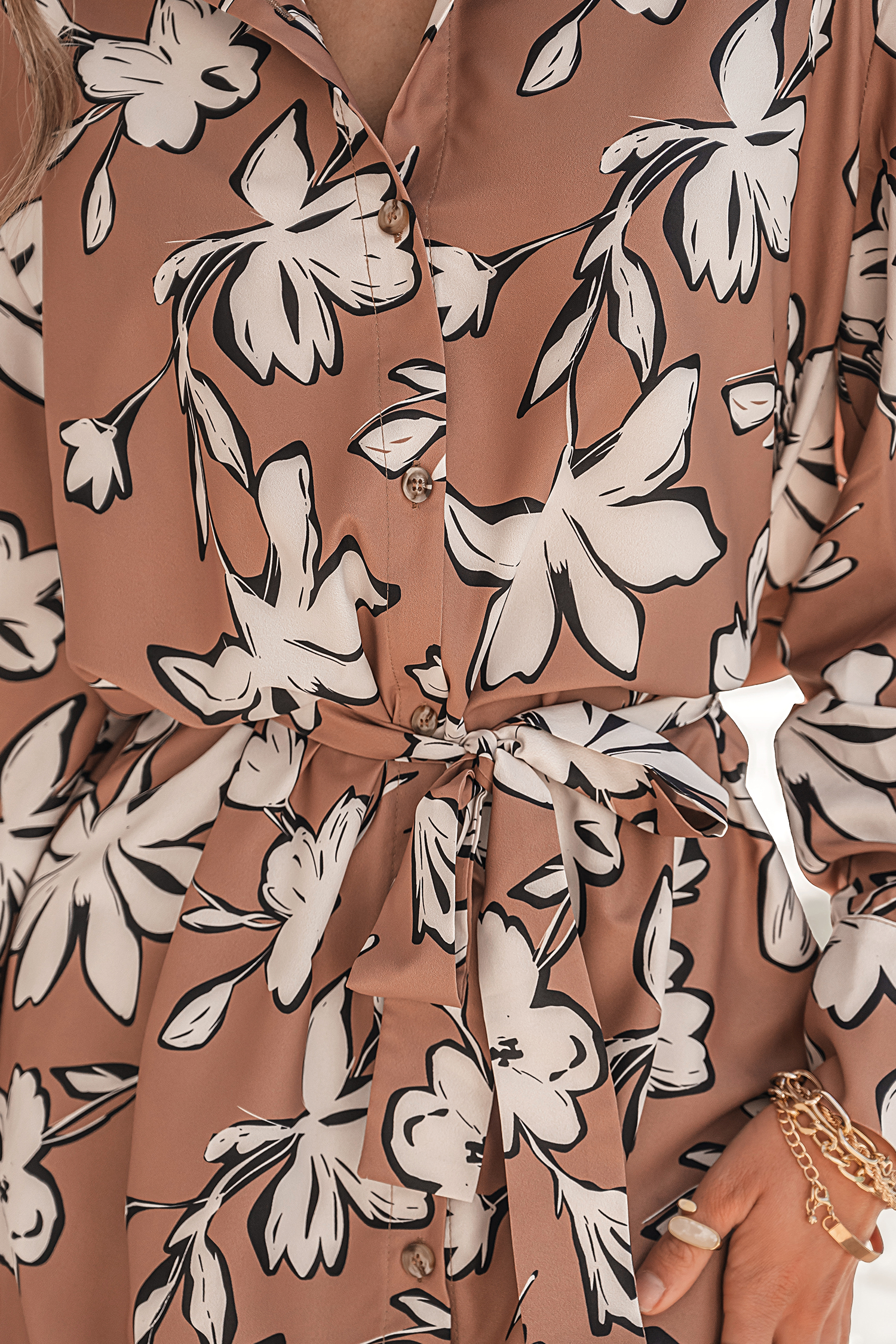 HomeRobe à col de chemise à ceinture imprimé floral