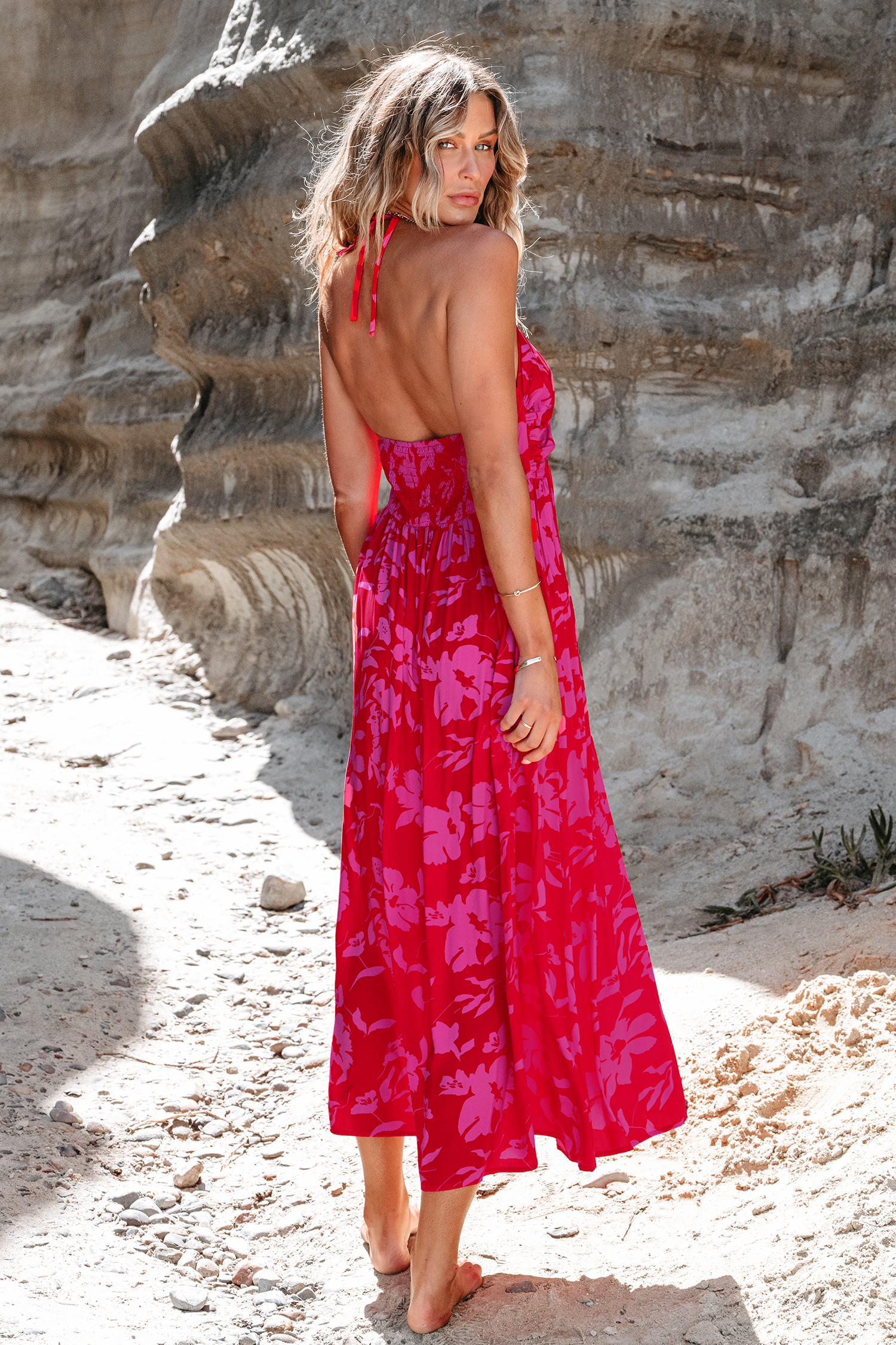 Robe maxi à col licou et imprimé floral