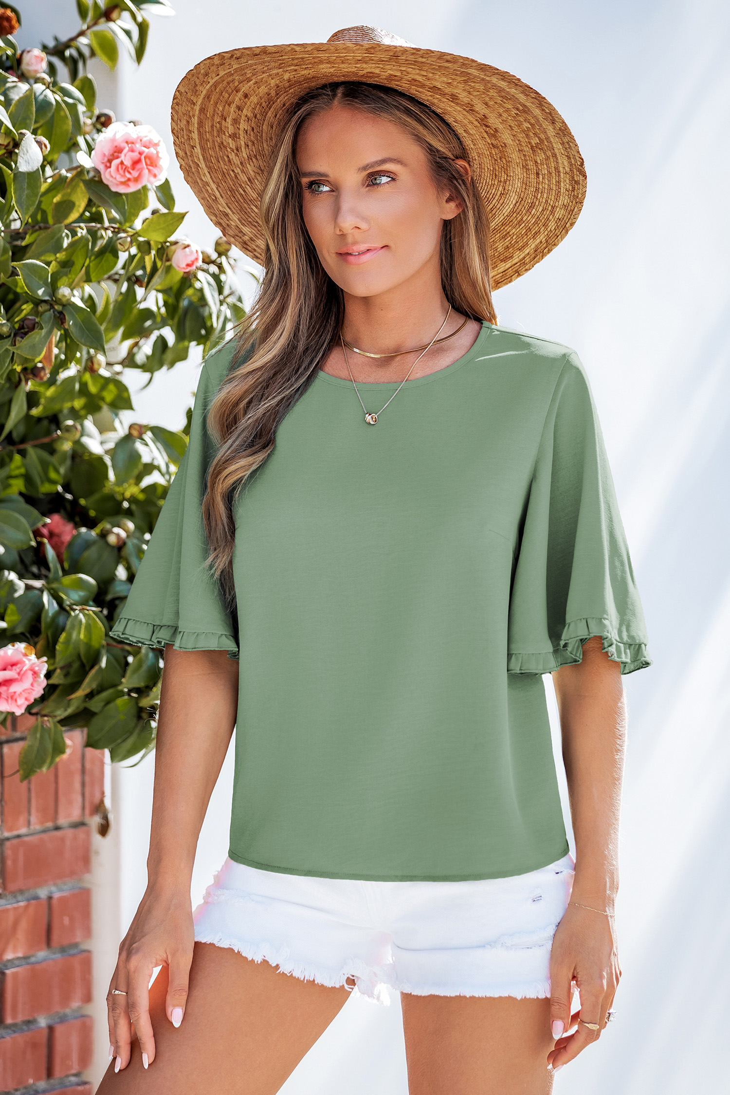 T-shirt vert tissé à manches de cloche