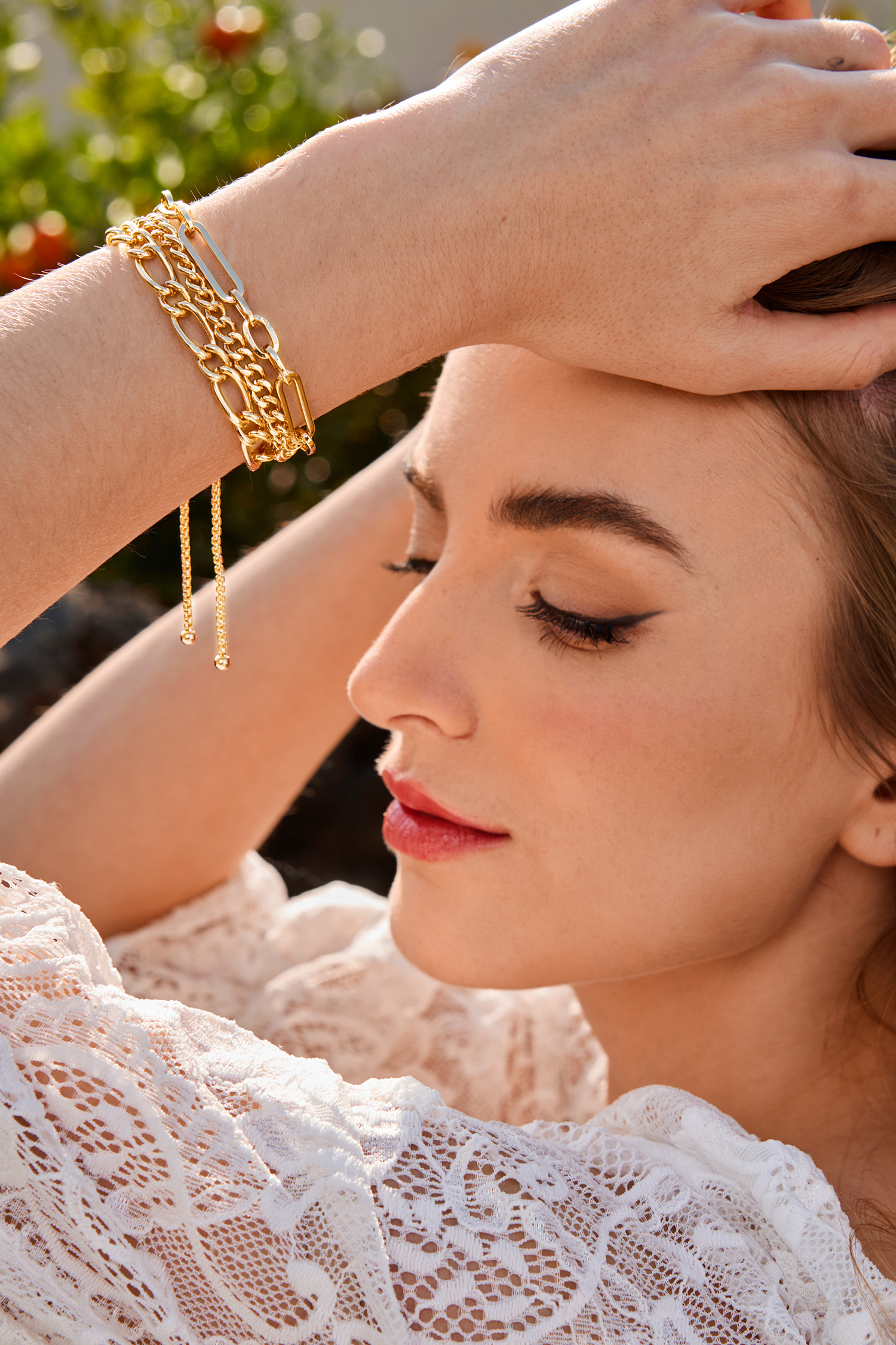 HomeBracelet superposé à chaîne en métal doré