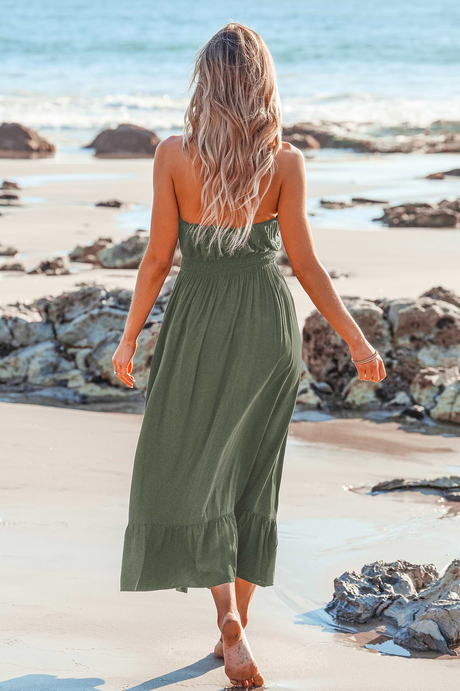 Robe maxi avec taille à smocks et boutons sur le devant verte