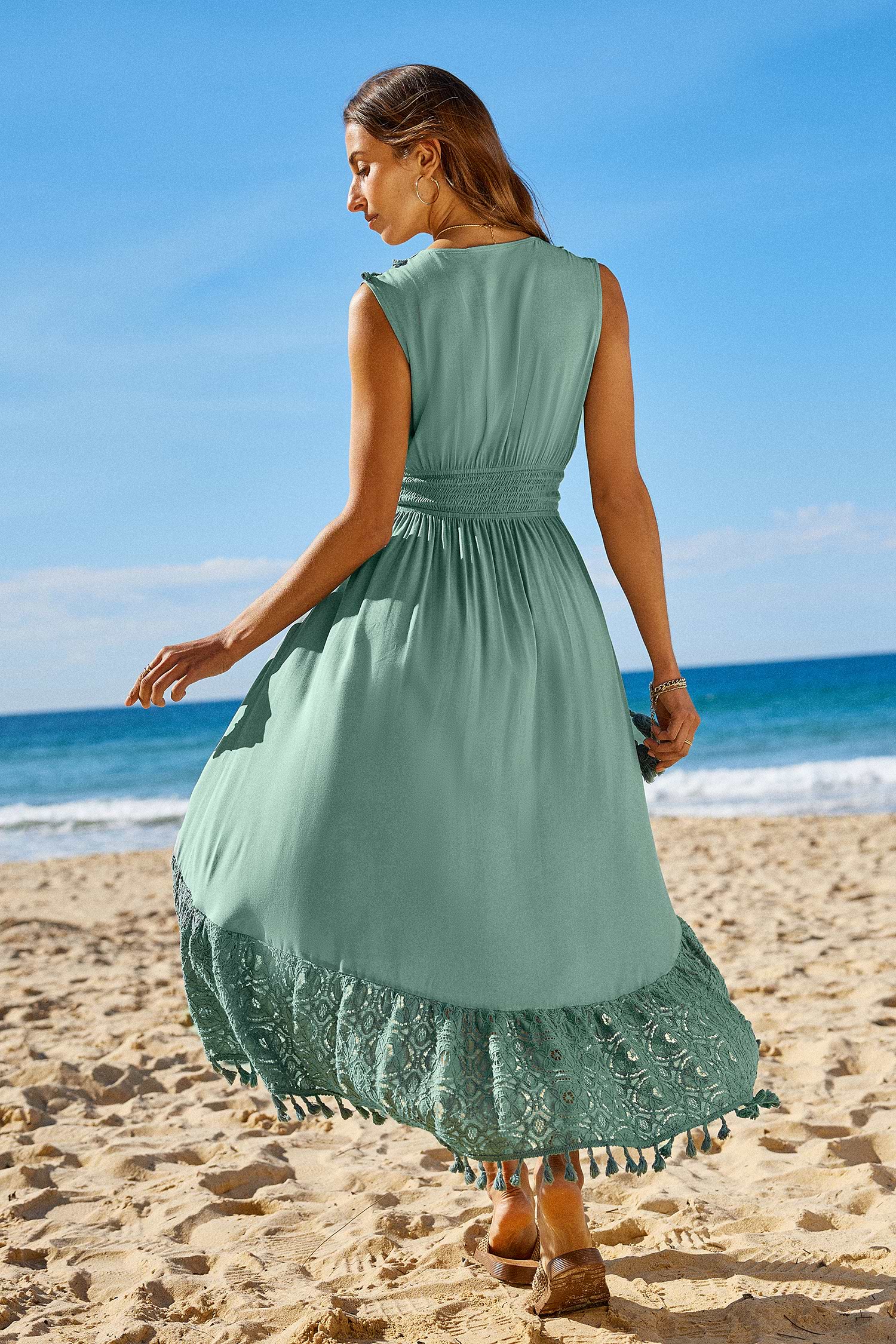 Robe taille haute sans manches à ourlet en dentelle verte